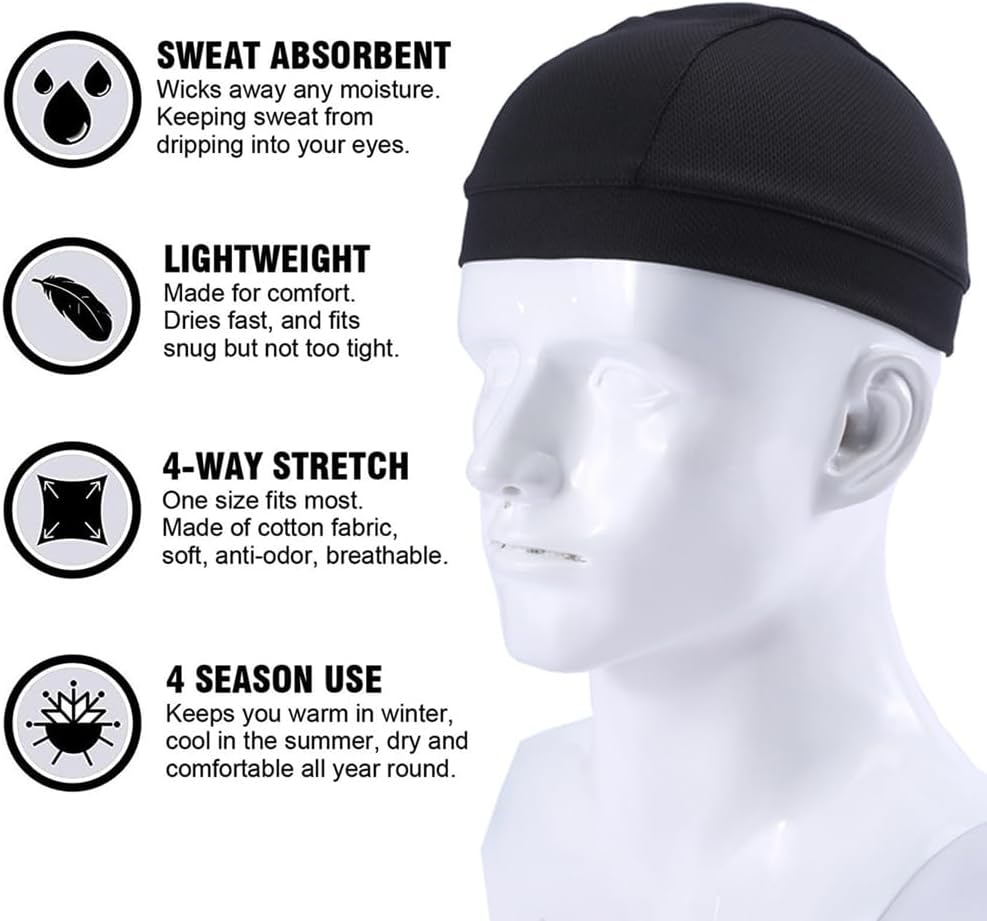 This is a good quality skull cap made of 85% cotton and 15% spandex, which is soft, stretchy, lightweight, and quick-drying. It can effectively absorb sweat and wick it away, keeping your head dry and cool during various outdoor sports activities. It is suitable for cycling, running, hiking, skiing, motorcycling, fishing, and many other sports. The unisex design makes it suitable for both men and women to wear. One size fits most people with an adjustable strap at the back, which can be easily adjusted to fit different head sizes.