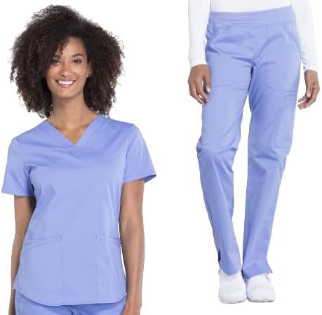 SPECIAL BUNDLE INCLUDES 2 ITEMS: Workwear Professionals Women Medical Uniform Scrub Bundle Set V-Neck Top WW665 & Mid Rise Straight Leg Pull-on Cargo Pant WW170