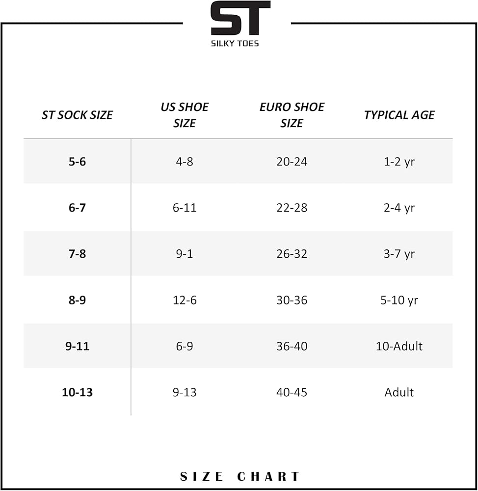 المقاسات المدرجة هي مقاسات الجوارب وليست مقاسات العمر أو مقاسات الأحذية. تحقق من جدول المقاسات الموجود في معرض الصور. جدول المقاسات: المقاس 6-7 - مقاس الحذاء الأمريكي 6-11 - العمر النموذجي - 2-4 سنوات. /المقاس 7-8- - مقاس الحذاء الأمريكي- 9-1- العمر النموذجي 3-7 سنوات / المقاس 8-9- مقاس الحذاء الأمريكي-12-6- العمر النموذجي 5-10 سنوات / المقاس 9-11- مقاس الحذاء الأمريكي - 6-9- العمر النموذجي 10- للبالغين/ المقاس 10-13- مقاس الحذاء الأمريكي 9-13- العمر النموذجي للبالغين. يناسب الأطفال الصغار والفتيات الصغيرات وحتى الفتيات الكبيرات أو المراهقين.