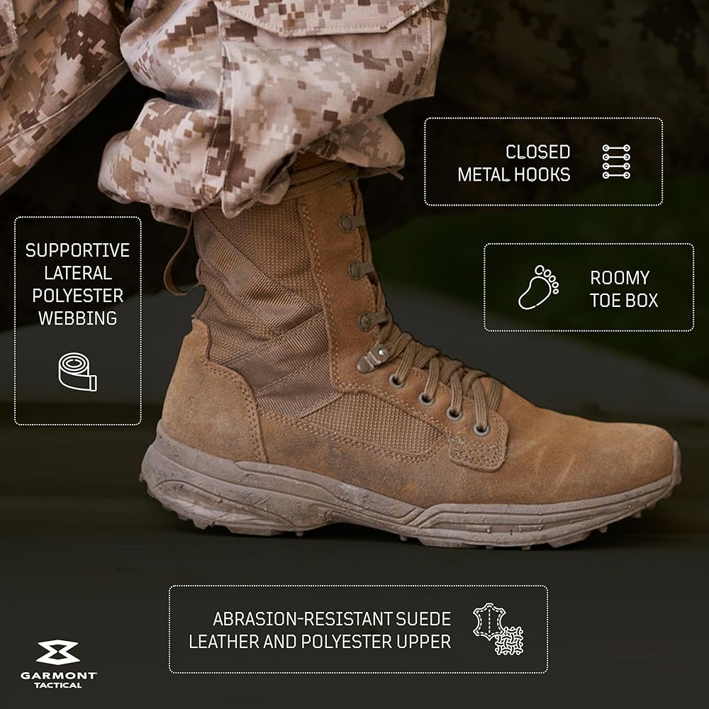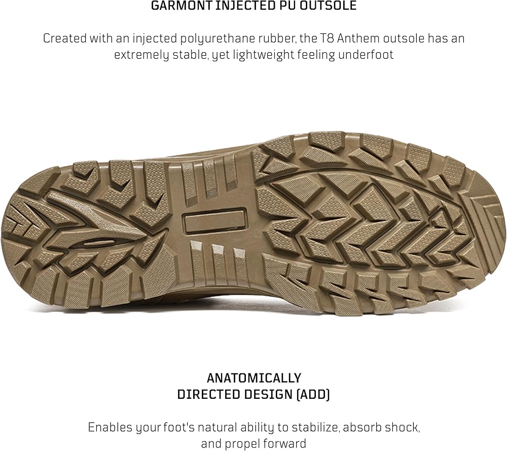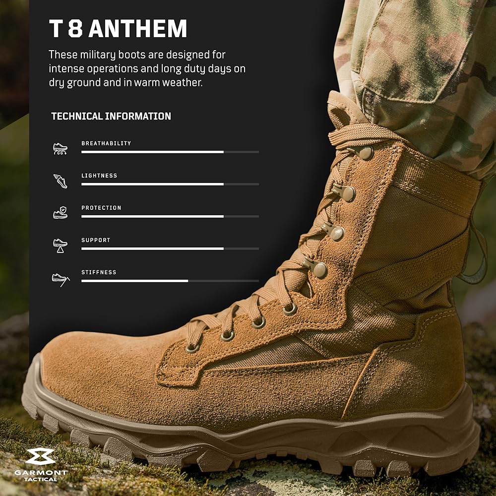 حذاء T 8 ANTHEM من الجلد السويدي - تم تطويره خصيصًا للجيش الأمريكي المشارك في العمليات التكتيكية اليومية؛ يحتاجون إلى أحذية قتالية خفيفة الوزن أثناء الحركة أو الوقوف لساعات طويلة لمواجهة الأحداث المفاجئة غير المتوقعة على التربة القاحلة ذات درجات الحرارة المرتفعة جدًا.