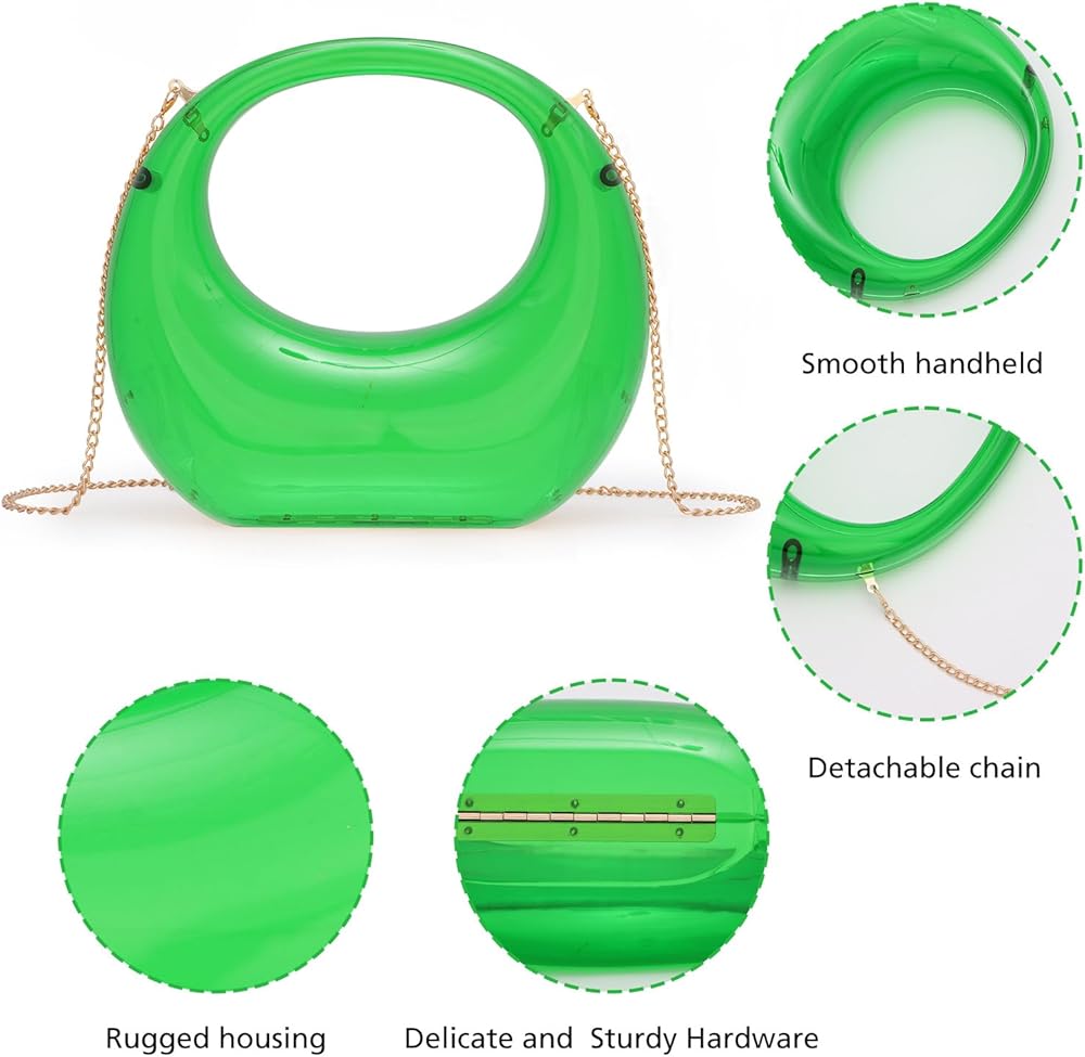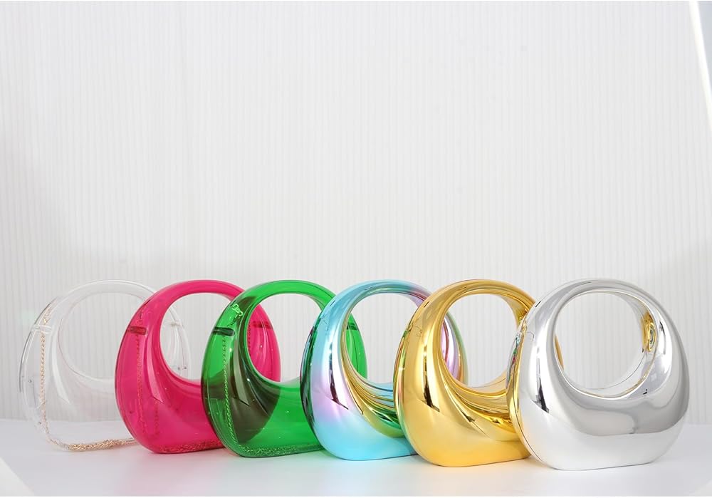 • تصميم أنيق: حقيبة السهرة المصنوعة من الأكريليك بتصميم على شكل قمر، محفظة القمر المعدنية تظهر ملمسًا معدنيًا مذهلاً، فريدة وبسيطة. سوف يجعلك عصرية ومتميزة في المناسبات الخاصة.