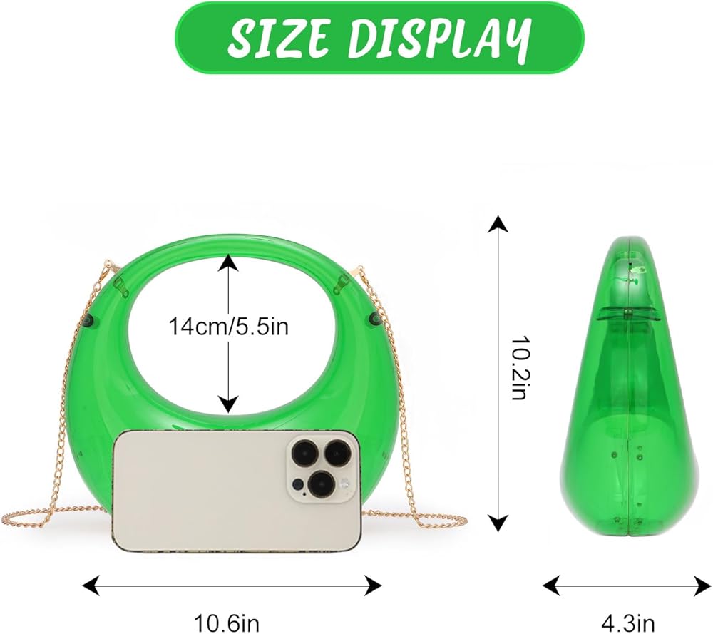 • المواد: حقيبة اليد المسائية مصنوعة من الأكريليك عالي الجودة، وأجزاء صلبة معدنية، ناعمة ومتينة. سوف يتناسب بسهولة مع ملابسك بألوان وأنماط مختلفة.