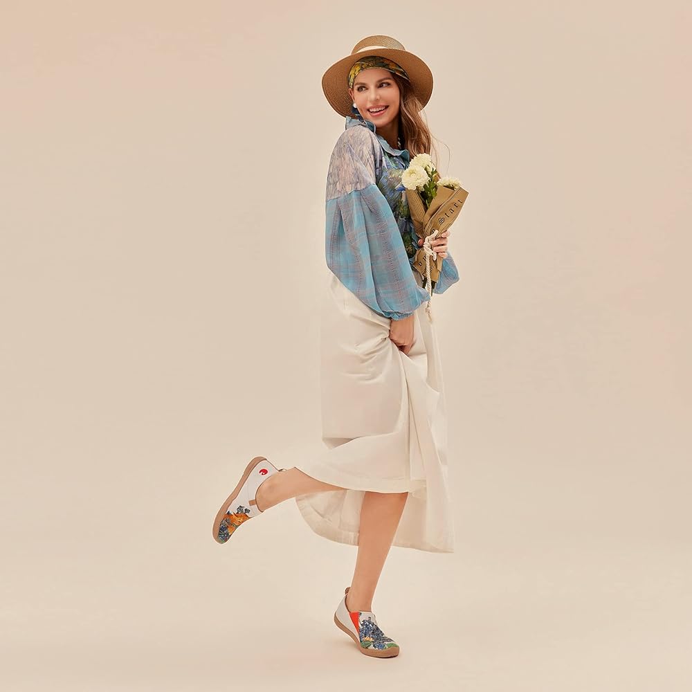 When it comes to the second creations of Van Gogh's artworks and Fatcatart, you are the walking artist with the company of master's masterpieces. The playful, adorable orange cat on the upper makes a statement on your feet. The whole series brings a warm and beautiful travel mood to cat lovers.