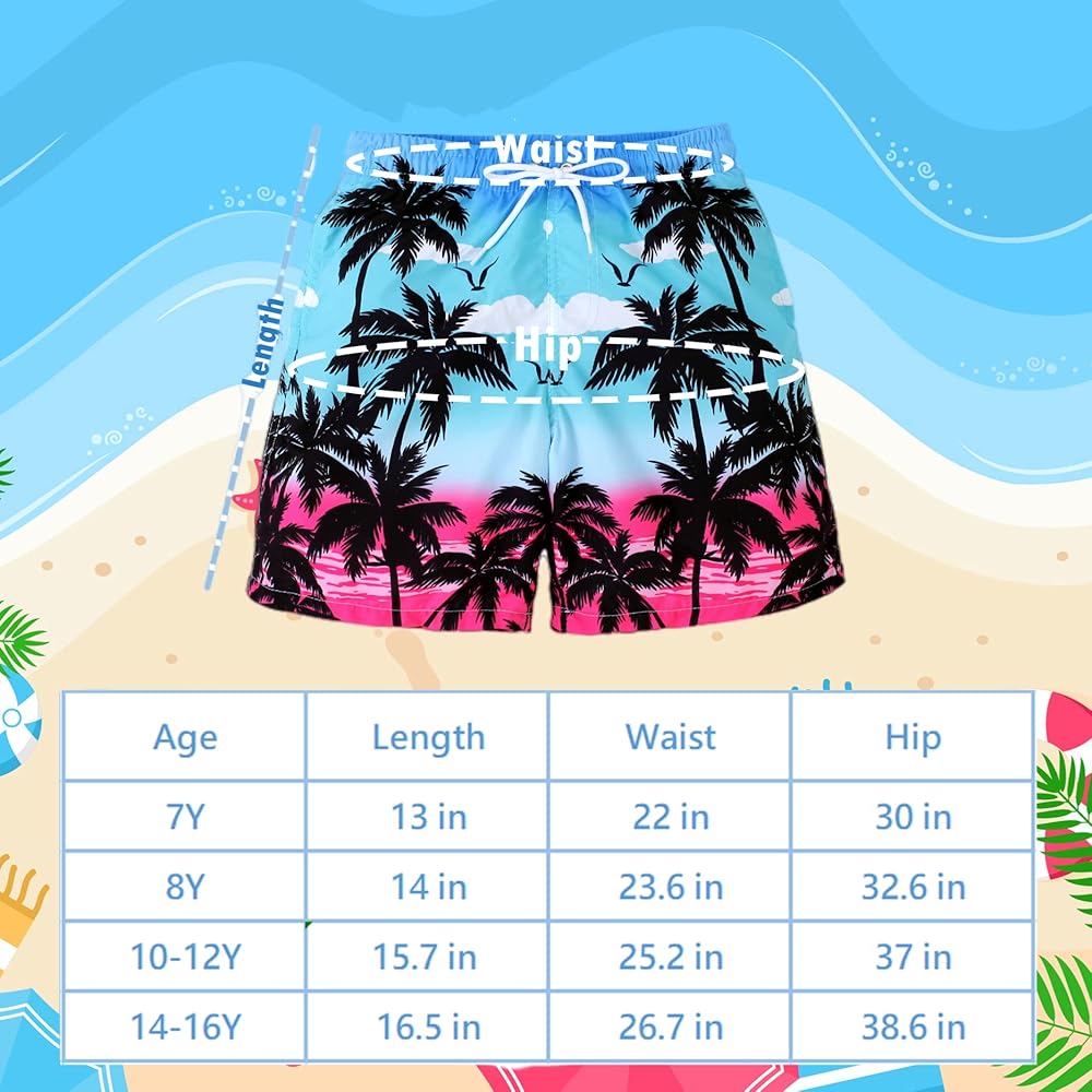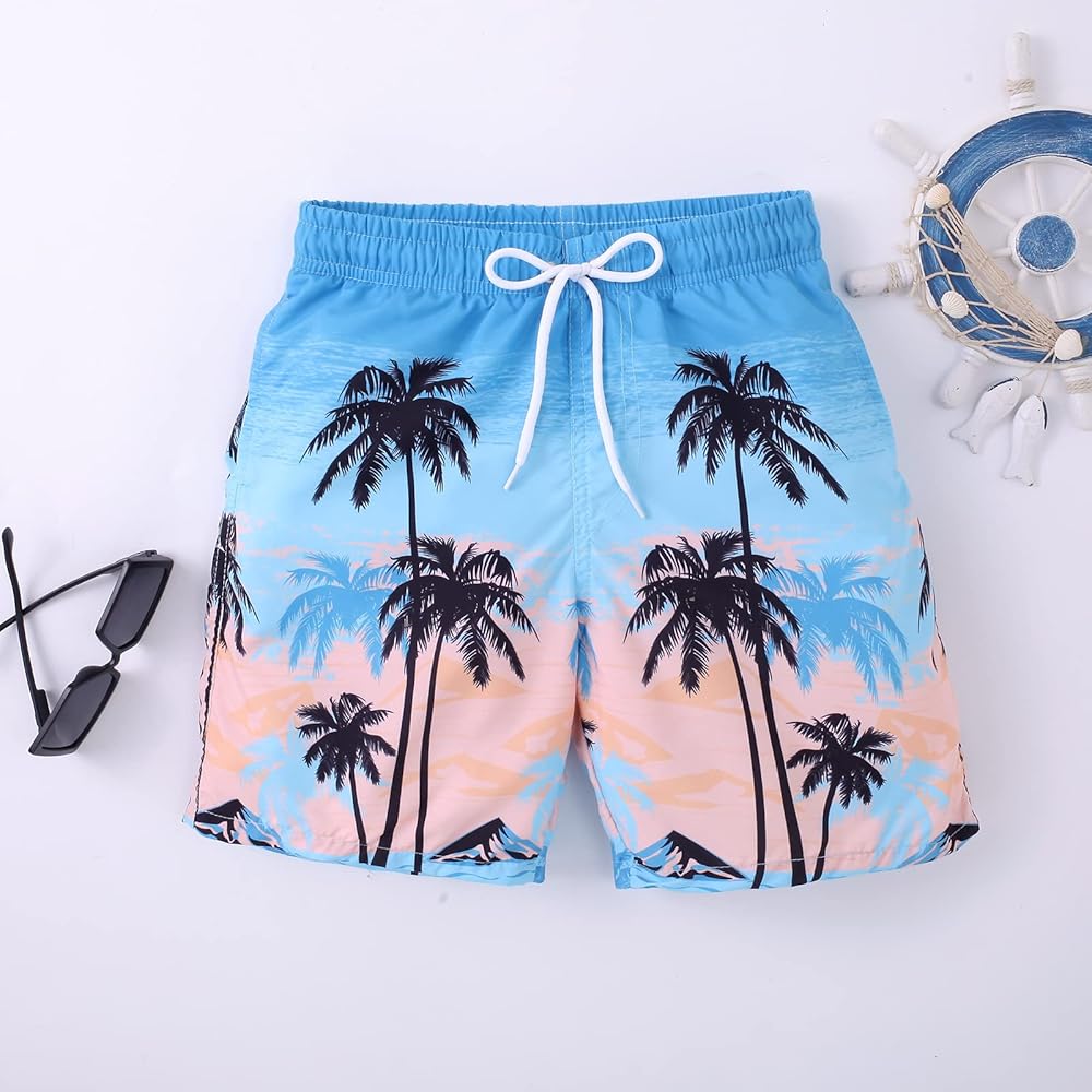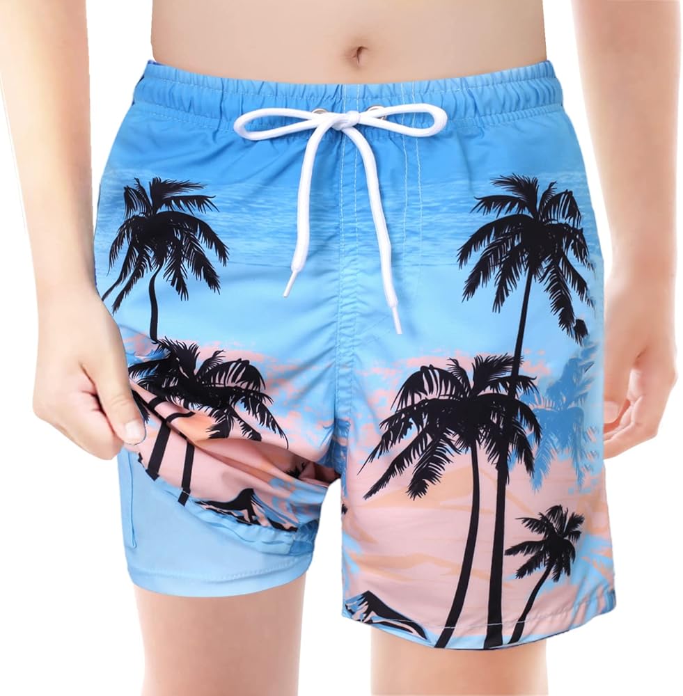 YIRONGWANG الأولاد ملابس السباحة جذوع الملاكم بطانة بسط ضغط هاواي شاطئ ملابس السباحة السراويل UPF 50 + سريعة الجافة 7-16 سنة