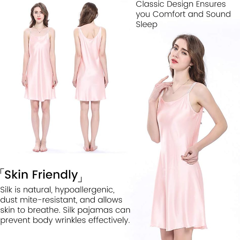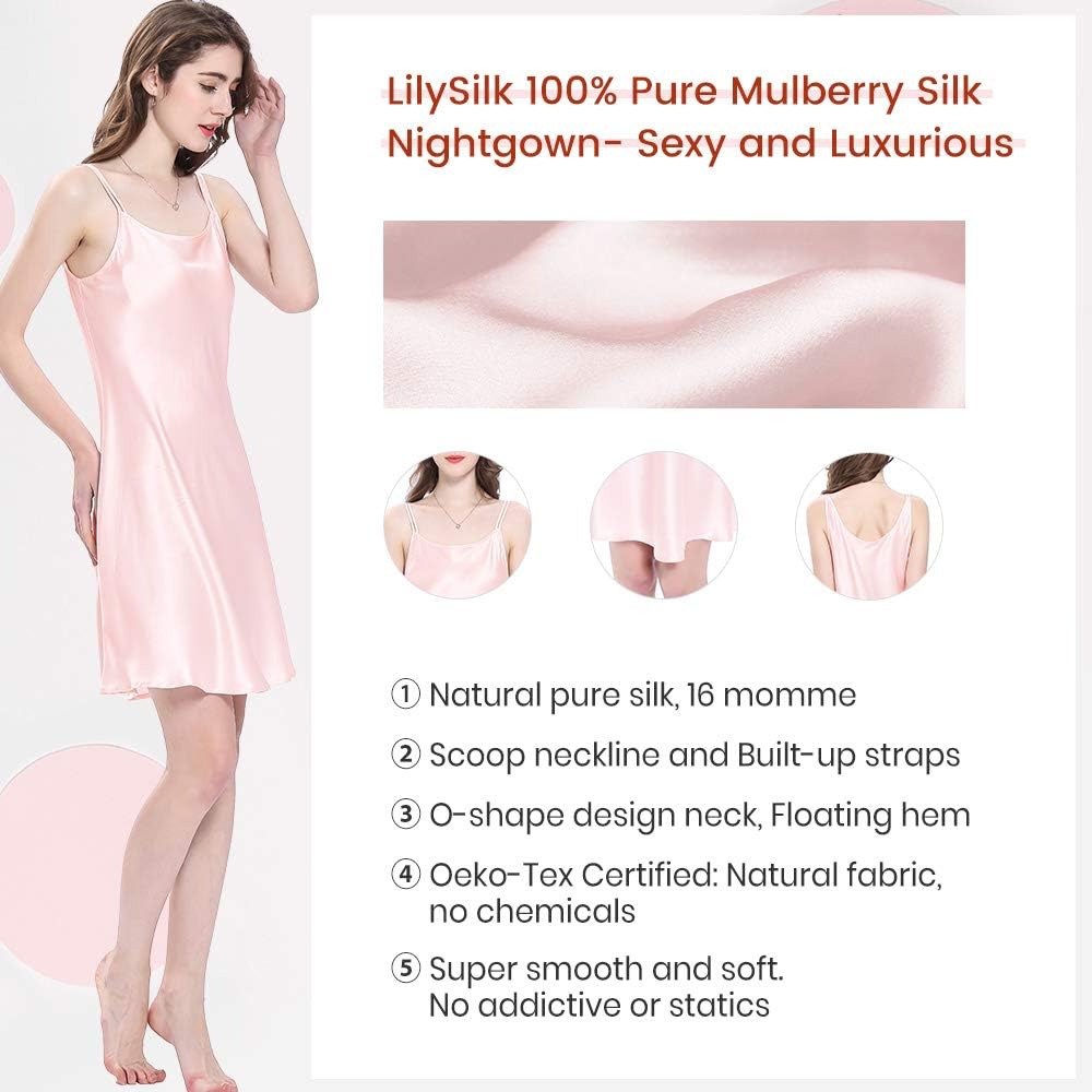 ثوب نوم حريري 100% من LilySilk للنساء 19 ملم حرير التوت قصير قميص نوم مثير للسيدات، وردي S