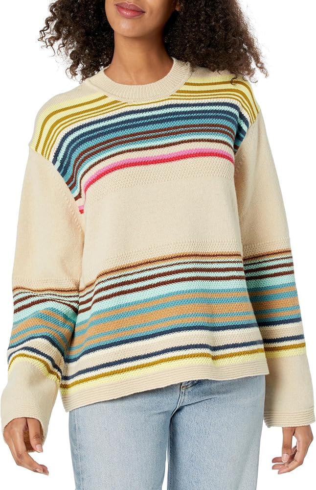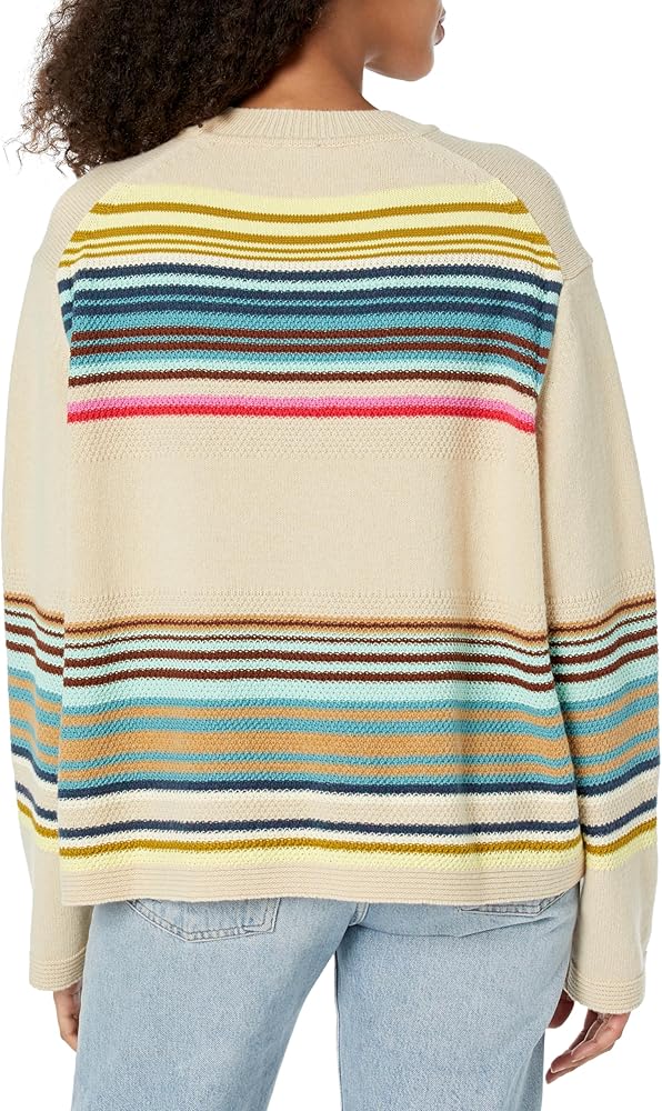 - This basket weave cardigan features a colorful contrasting stripes