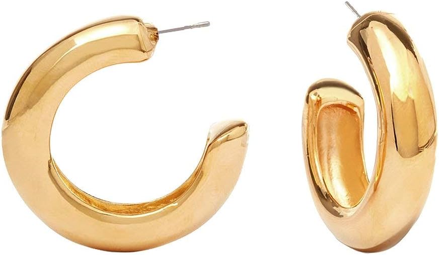 Kenneth Jay Lane, Gold Thick Tube Hoops, Choose: Pierced Or Clip