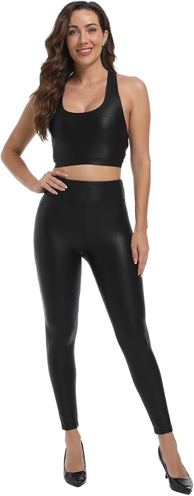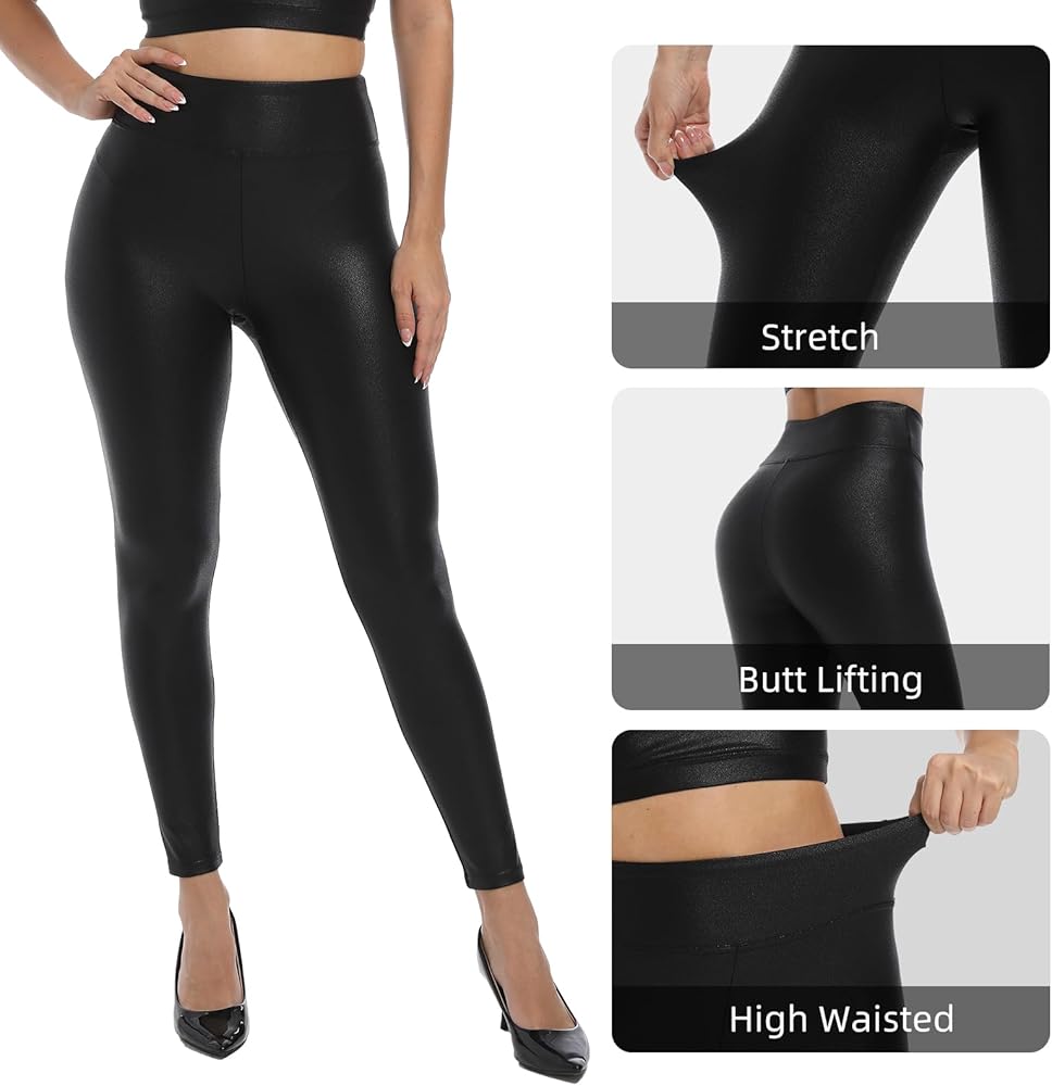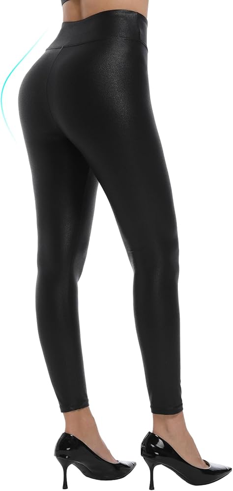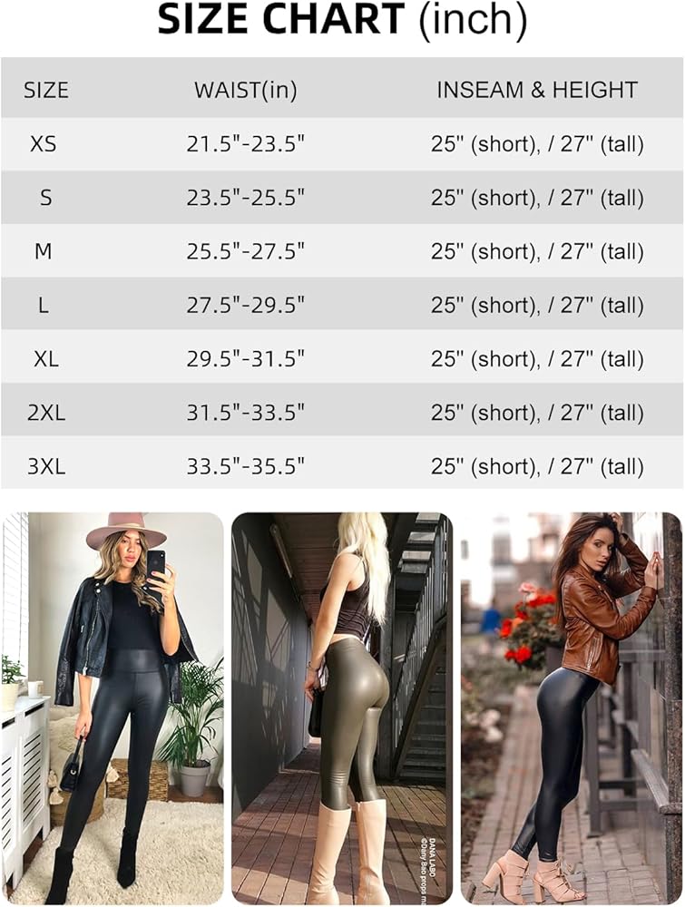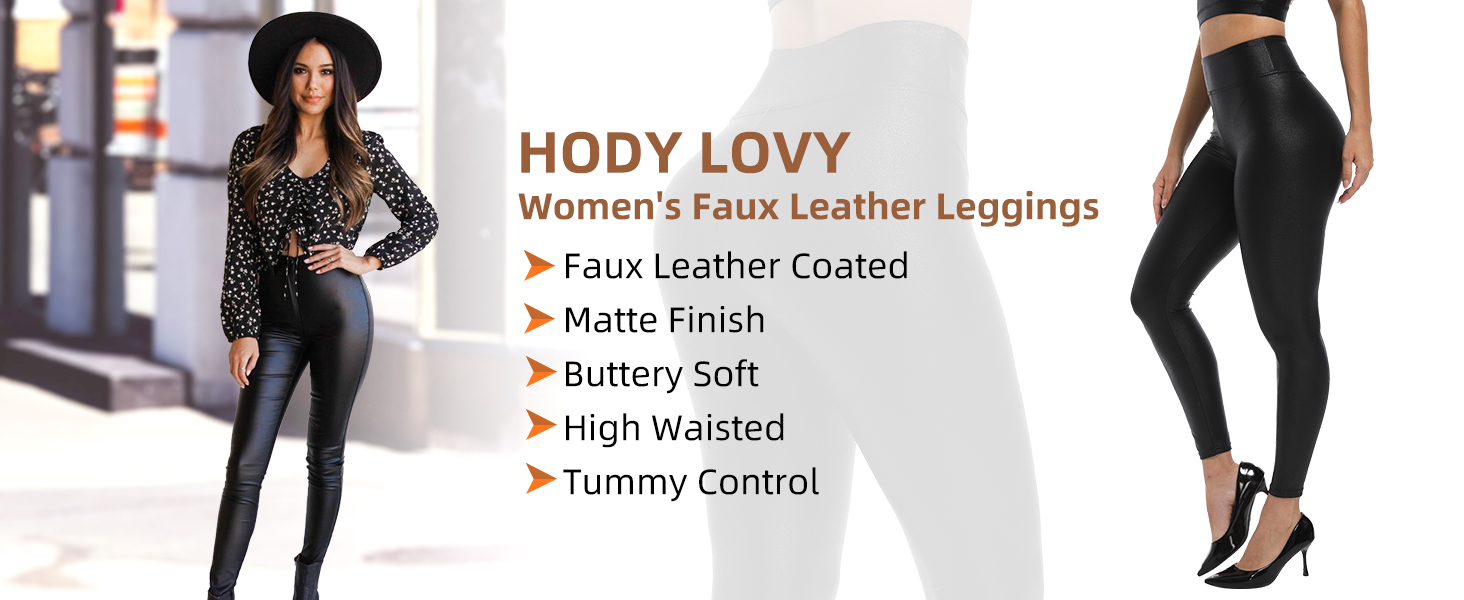 سروال ضيق من الجلد الصناعي للنساء من هودي لوفي 25 انش/27 انش بخصر مرتفع قابل للتمدد للتحكم في البطن