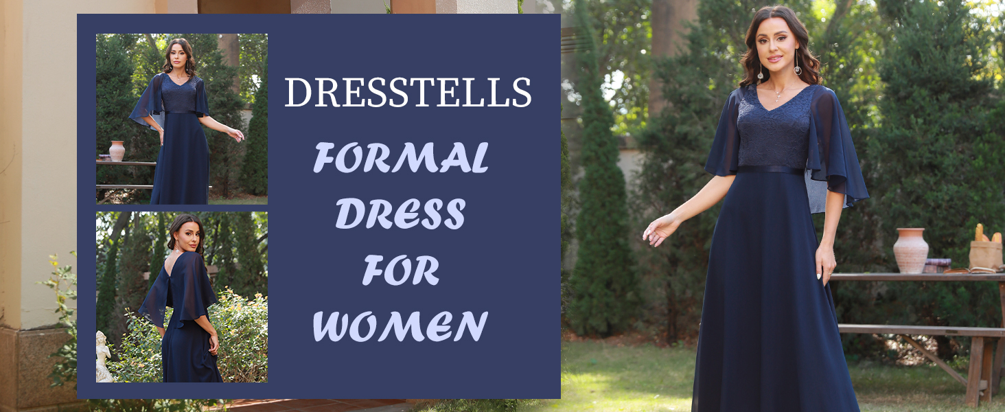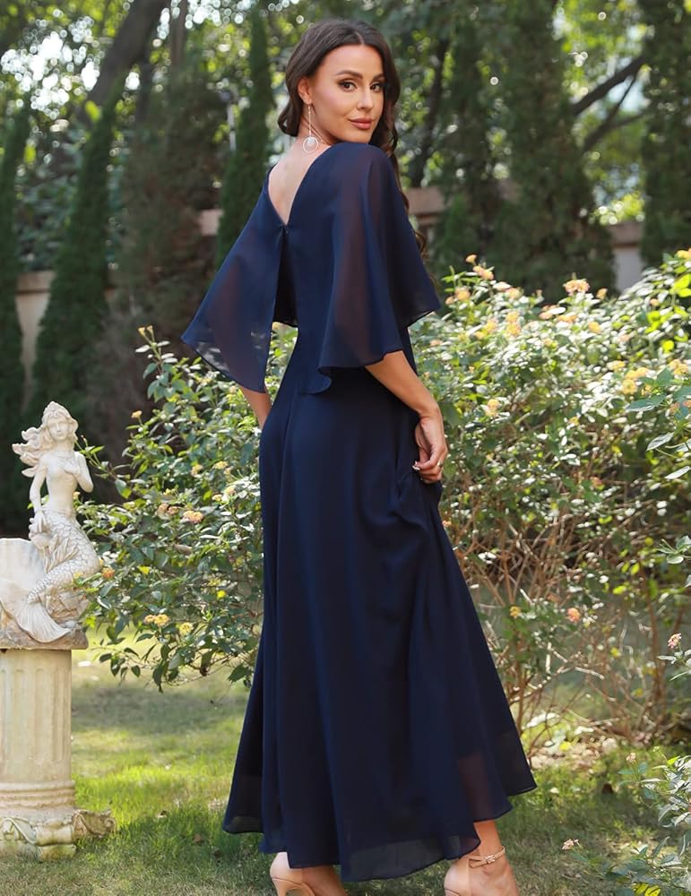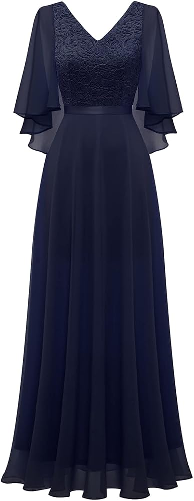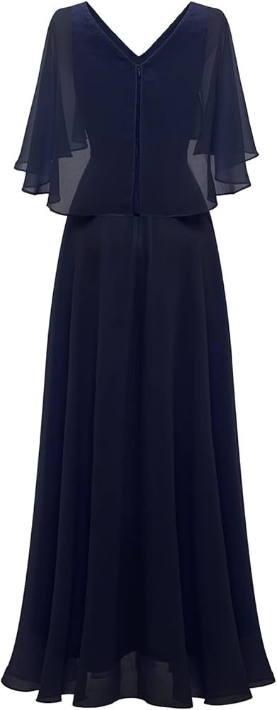 فساتين رسمية من DRESSTELLS للنساء 2023 لحفلات الزفاف الشيفون بأكمام كيب ووصيفات العروس وحفلات العودة للوطن الجدد وحفلات العودة إلى المدرسة وحفلات السهرة باللون الكحلي M