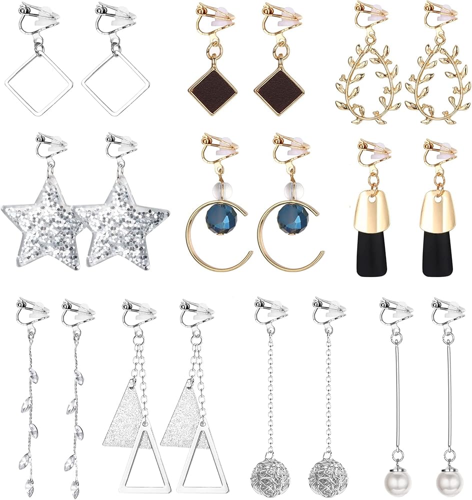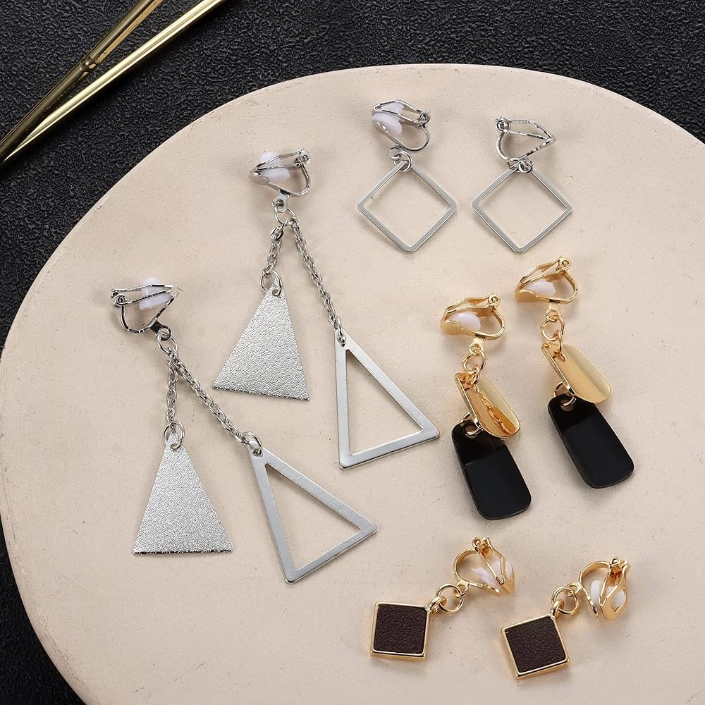 • 🌟 Long Clip on Earrings🌟--- You will receive 10 pairs of clip earrings in different styles. These elegant and simple non pierced earrings are very suitable for daily use and any special occasions. You can also choose different styles for different suits. Simple clip earrings for teenagers, women and people without perforations.