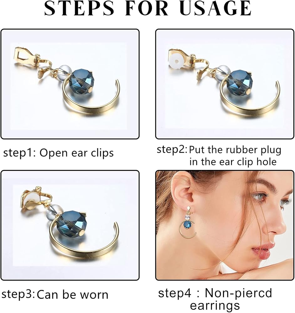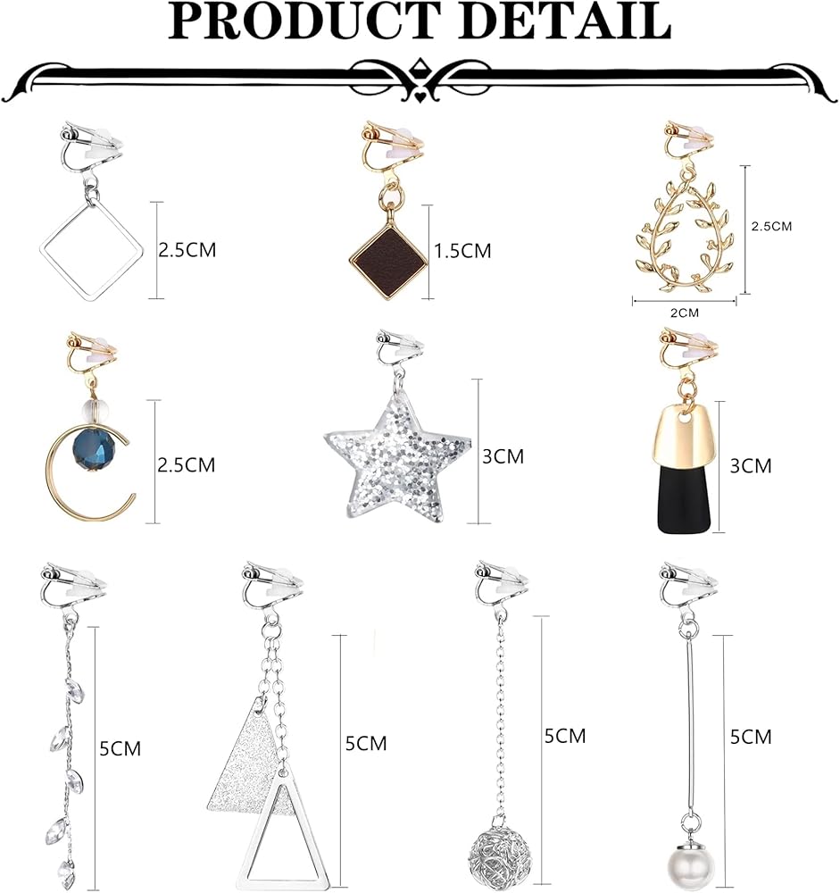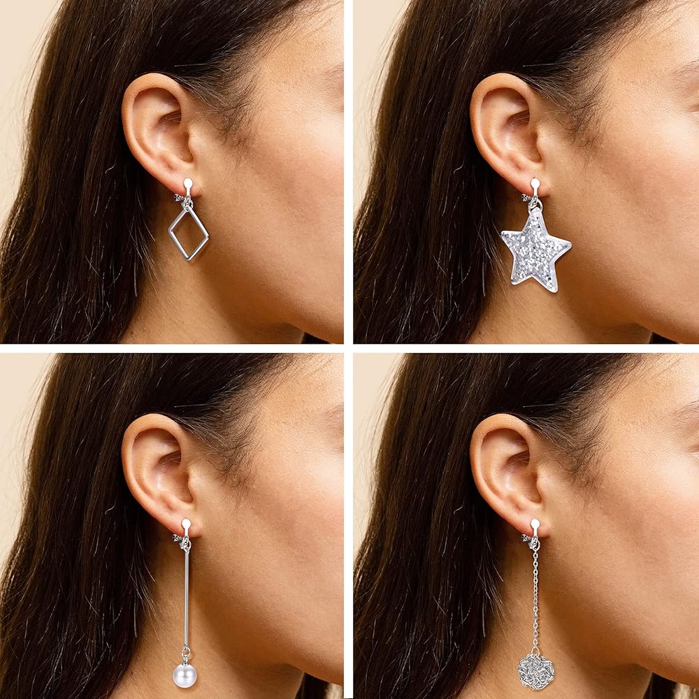 • 🌟 Material🌟--- These dangle clip earrings are made of alloy. The clips are suitable for female ear lobes and easy to place and remove. They include soft and healthy rubber clips. When used, they will protect the ear lobes from metal pressure and provide you with a comfortable use experience.