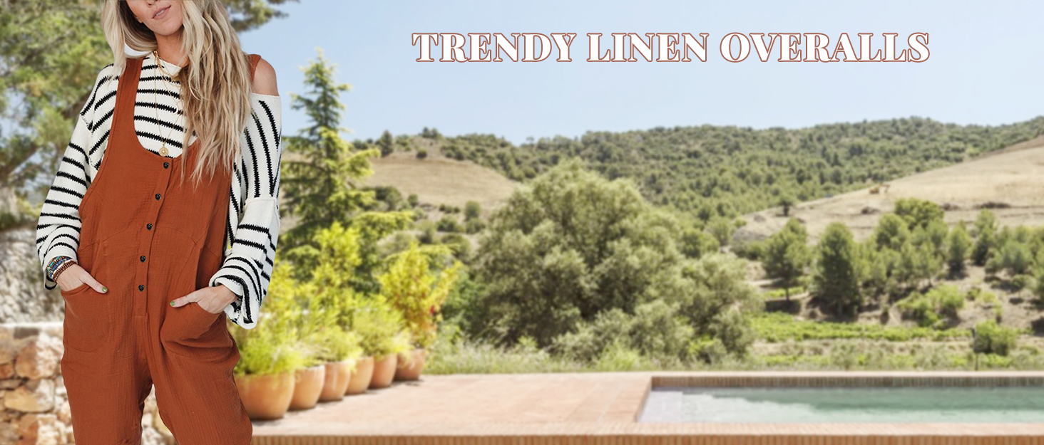 يوكو جمبسوت كاجوال فضفاض من القطن والكتان مع جيوب للنساء