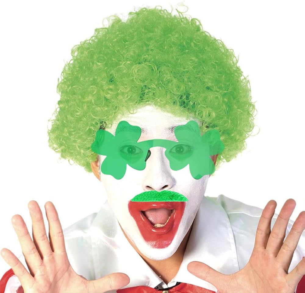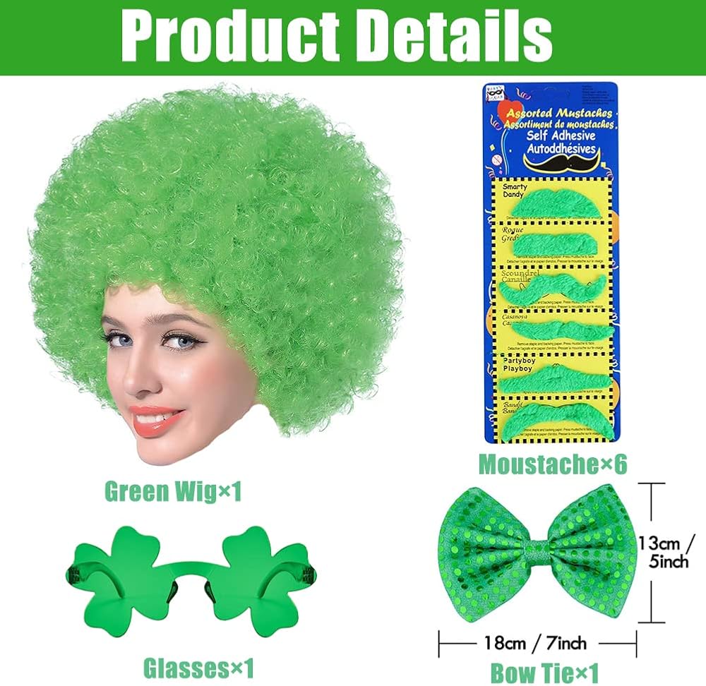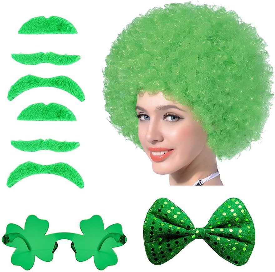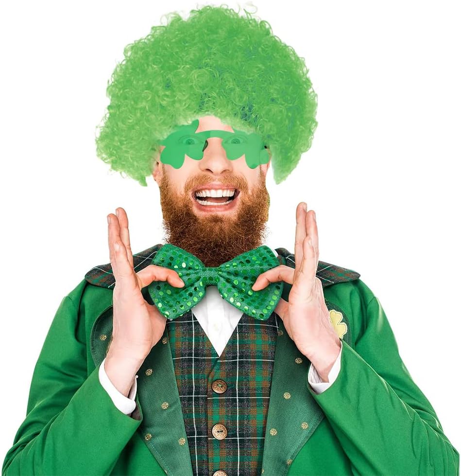 St Patrick's Day Party Favors Supplies Set, St. Patricks Day Accessories Cosplay Props Irish Party Funny Costume Accessory Party Supplies Green Wig, Green Beard, Clover Sunglasses, Sequin Bow, Green,