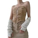 Y2K Women Teens Arm Warmers Japanese Harajuke Lolita Cute Knitted Fingerless Gloves Heart Thumb Hole Gloves