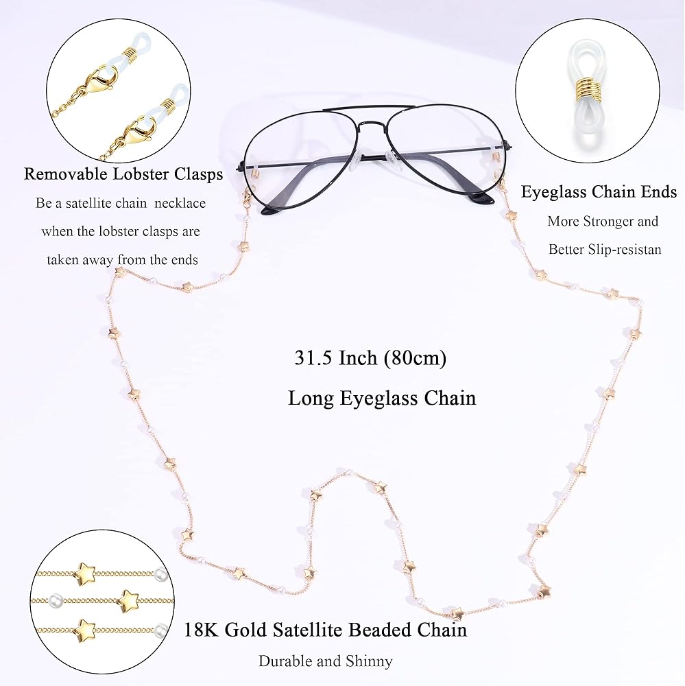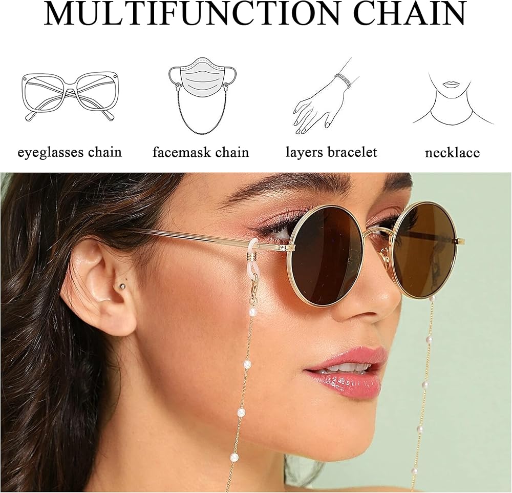 • 【سلاسل نظارات للنساء】يمكنك الحصول على 4 قطع من سلاسل النظارات الذهبية للنساء في طلب واحد، تصميمنا يجعل السلسلة الذهبية مرصعة باللؤلؤ الأبيض، مما يجعلك أكثر أناقة وعصرية عند ارتدائها. يمكن استخدامها كسلسلة نظارات للنساء. سوار متعدد الطبقات، سلسلة نظارات، قلادة، وما إلى ذلك لتلبية احتياجاتك المتنوعة.