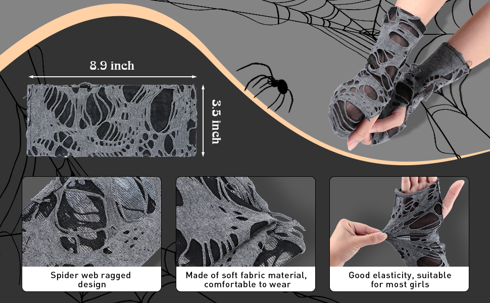 المقاس التفصيلي: يبلغ مقاس قفازات شبكة العنكبوت للهالوين تقريبًا 22.5 × 9 سم/ 8.9 × 3.5 انش، المقاس المناسب لمعظم النساء والسيدات والفتيات، المرونة الجيدة تجعلها تناسب يدك بإحكام، ليست ضيقة جدًا وليست فضفاضة جدًا، مما يوفر الحماية والدفء لراحة يدك ومعصمك، ومناسبة لجميع الفصول