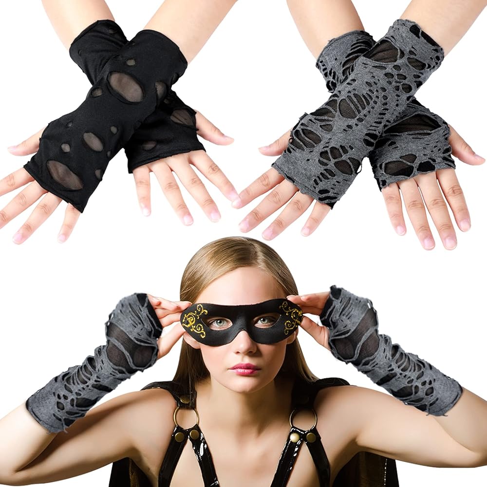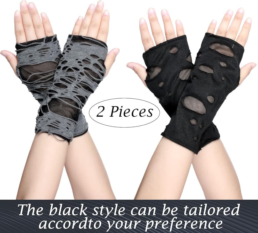 كمية العبوة: تأتي العبوة مع زوجين من القفازات الممزقة بدون أصابع متوفرة باللونين الأسود والرمادي الكلاسيكي، كمية كافية وأنماط كلاسيكية لتلبية احتياجاتك للارتداء أو المطابقة أو الاستبدال في حفلات الهالوين