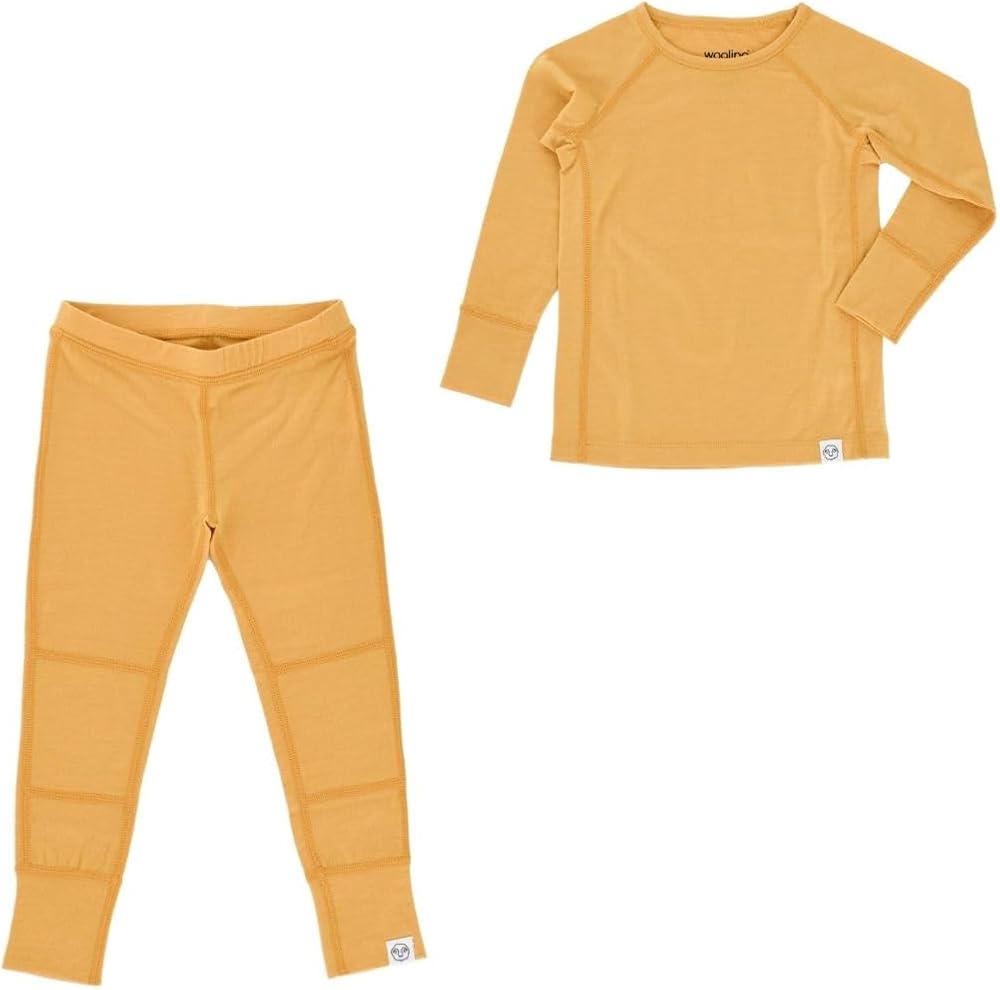 طبقة أساسية من صوف ميرينو Woolino للأطفال - قميص وسروال داخلي حراري بأكمام طويلة فائق النعومة للأطفال - قميص وجزء سفلي من طبقة أساسية طبيعية بالكامل - عسلي