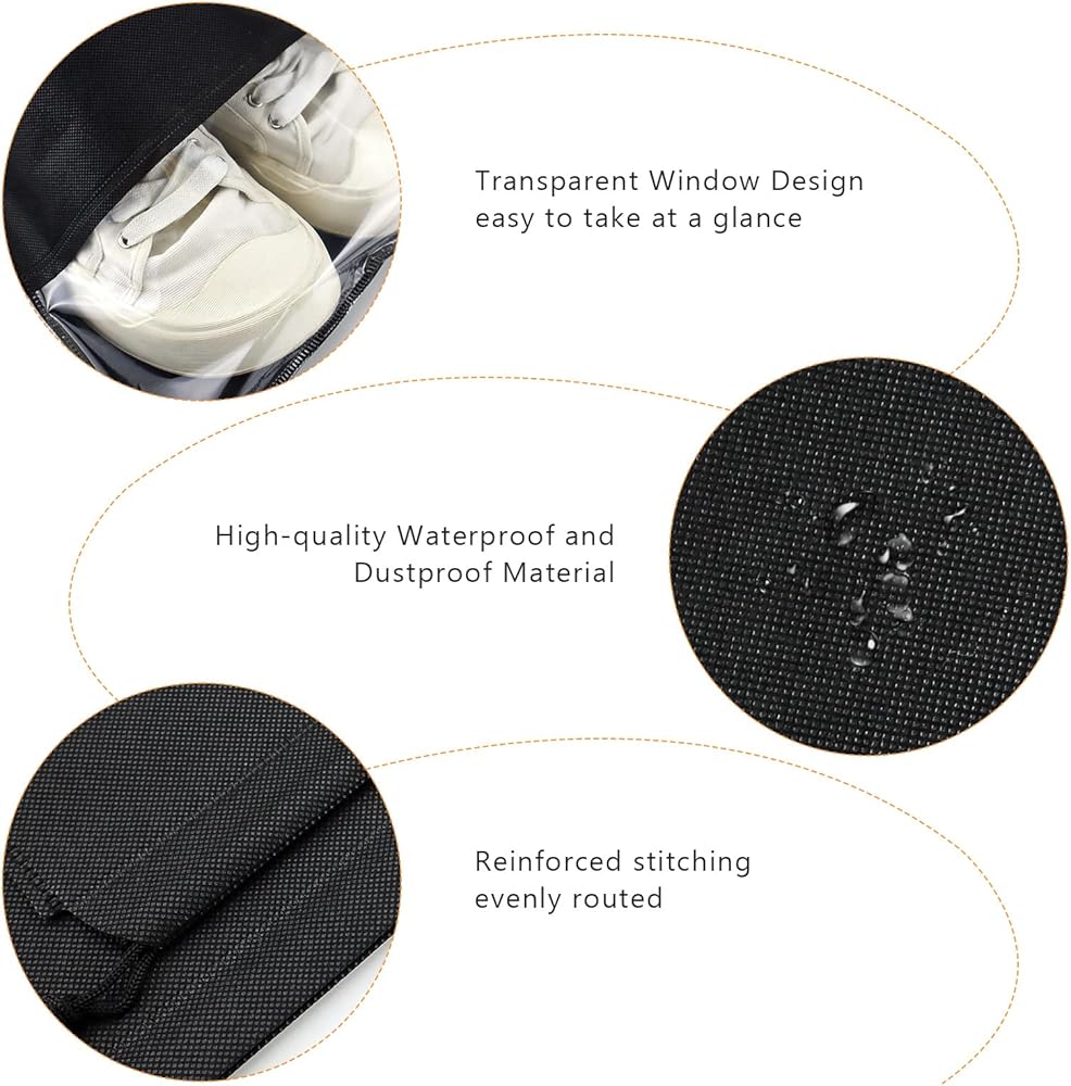 • 【Transparent Window Design】 The see-through transparent design helps you easily and quickly identify the contents in the shoe bags, time saving and convenience in travel and daily life, your perfect travel accessories.