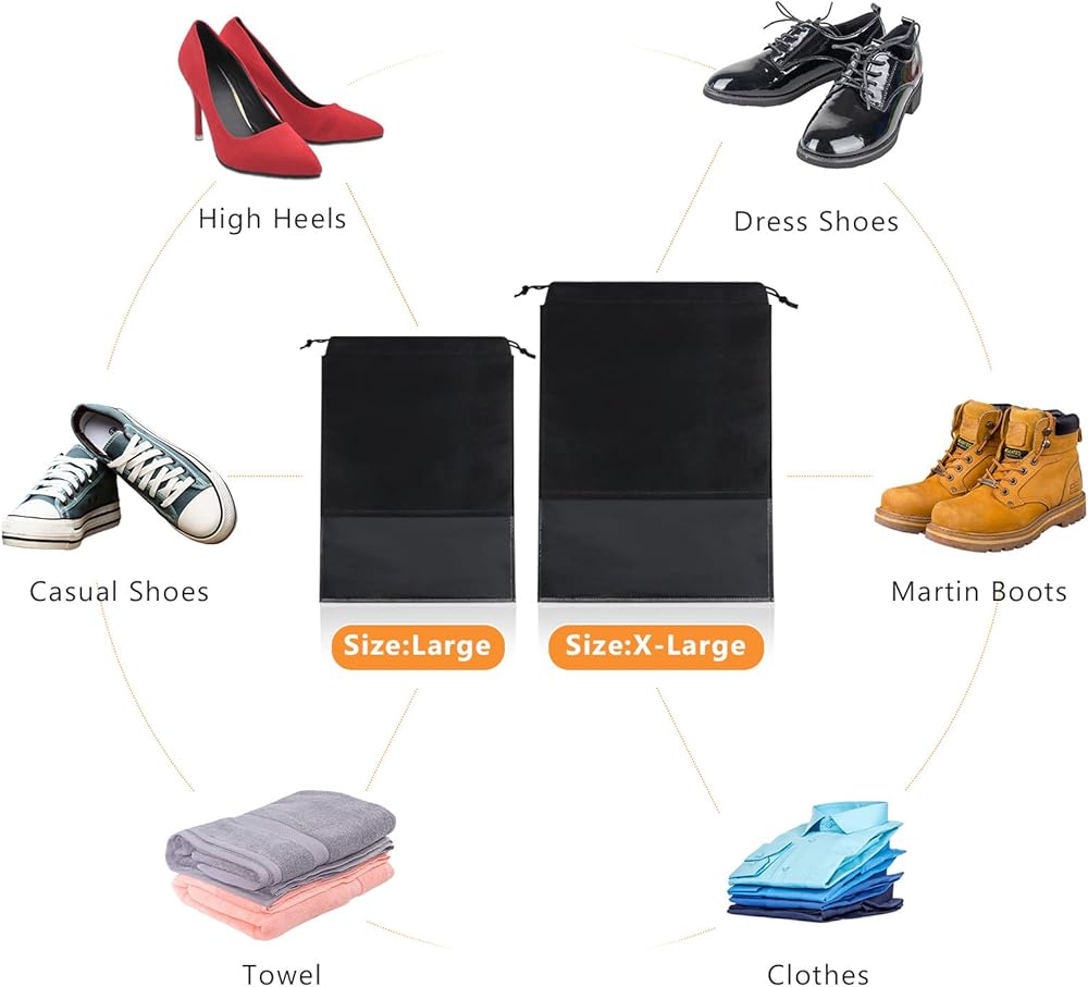 16 PCS Shoe Bags for Travel, LEEFONE Portable Shoe Bag for Storage Clear Window with Rope, Shoes Organizers for Men and Women Size (Black), Black, Shoe Bags
