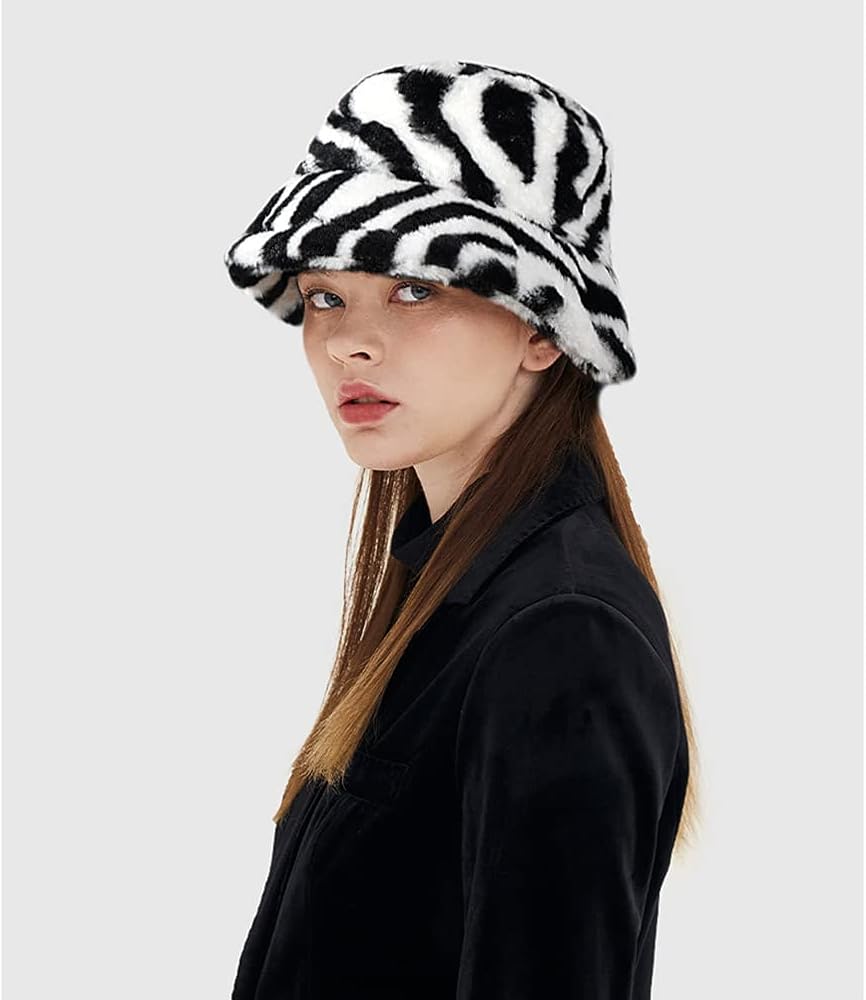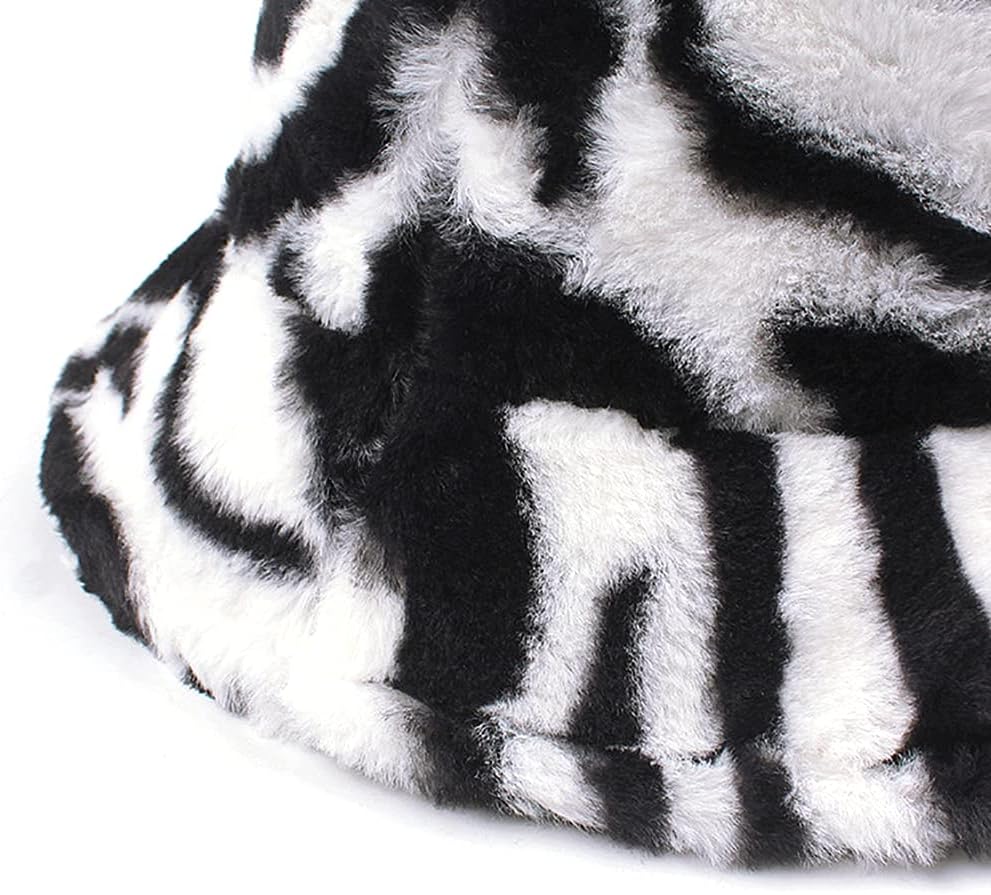 Faux fur bucket hat can block the cold wind in winter and keep your head warm. Zebra stylish animal pattern fisherman cap will make you stand out from the crowd.