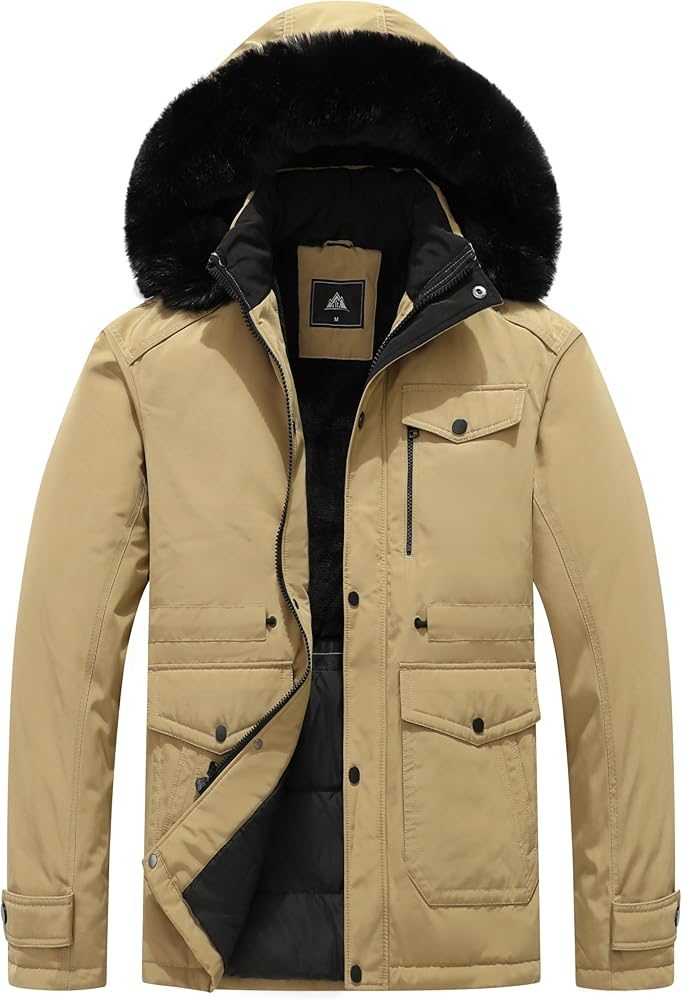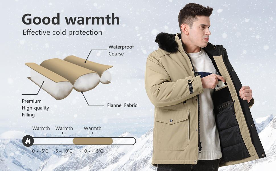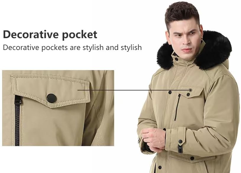 ابق دافئًا وجافًا في ظروف الشتاء القاسية مع معطف الشتاء الرجالي المقاوم للماء والمصنوع من القطن الفراغي ثلاثي الأبعاد والفانيلا بنسبة 100% من البوليستر.