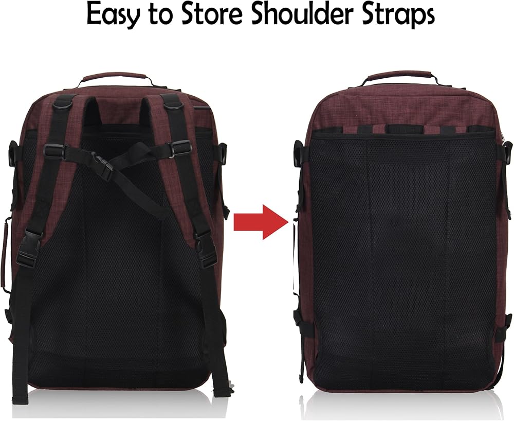 Comfortable to Carry, hide-away contoured travel luggage backpack straps are well padded with air mesh, can carry it comfortably as a carry on backpack or also can easy convert it into a weekender duffel bag; provide 3 carrying options for travelers' multiple alternatives; there is a sternum strap that adjusts lengthwise and slides up and down the shoulder straps