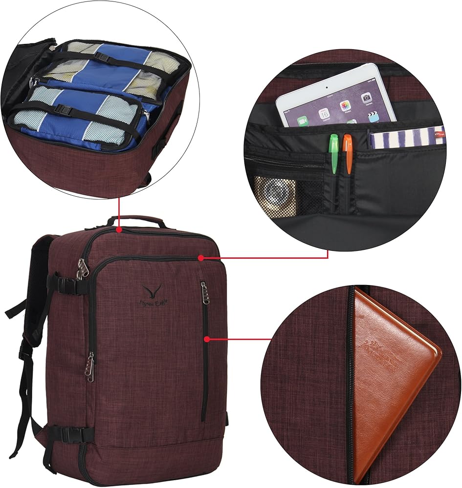 Hynes Eagle Carry on Backpack 38L Large Travel Backpack for Women Flight Approved Weekender Bag Laptop Backpack Men 15 inches Brown Hynes Eagle 3 Pieces Packing Cubes Set Travel Luggage Organizer Bag Grey