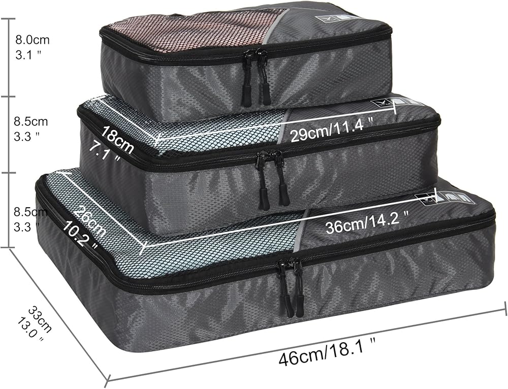 Durable Material, travel casual daypack is well made of polyester, features with refined metal zipper; Approx. Dimensions: 13 x 7.9 x 19.7 inches/33 x 20 x 50 cm;3 packing cubes set: Largex+Medium+Small; Laptop sleeve Dimensions: 16.5 x 12.6 inches/ 42 x 32 cm; travel laptop backpack fits for 15 inch laptop and some ultra-slim 17 inch laptop; 38L capacity is available to take to business trip, outdoor camping, overnight, college, also is a gifts for women or men