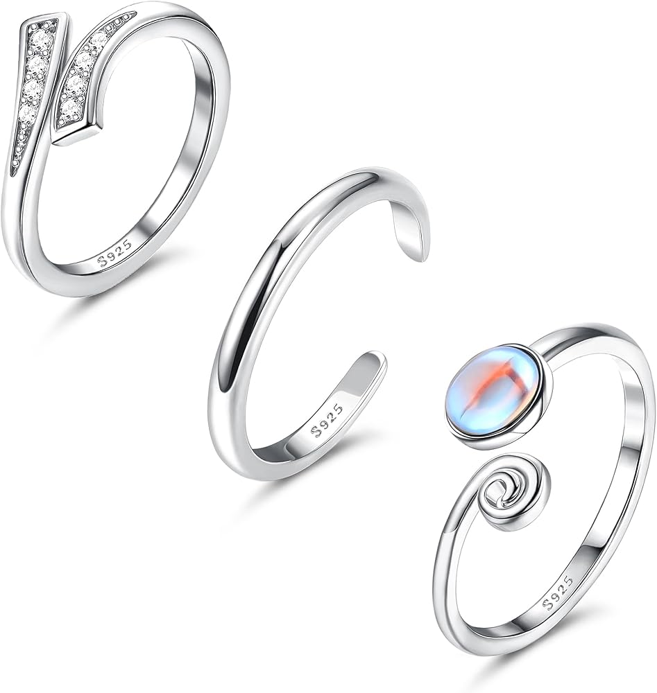 جريوي 3 قطع من خواتم اصبع القدم من الفضة الاسترلينية عيار 925 للنساء بتصميم عقدة سلتيك مفتوحة عند الاصابع مناسبة للشاطئ وحجر القمر, فضة استرلينية, حجر القمر
