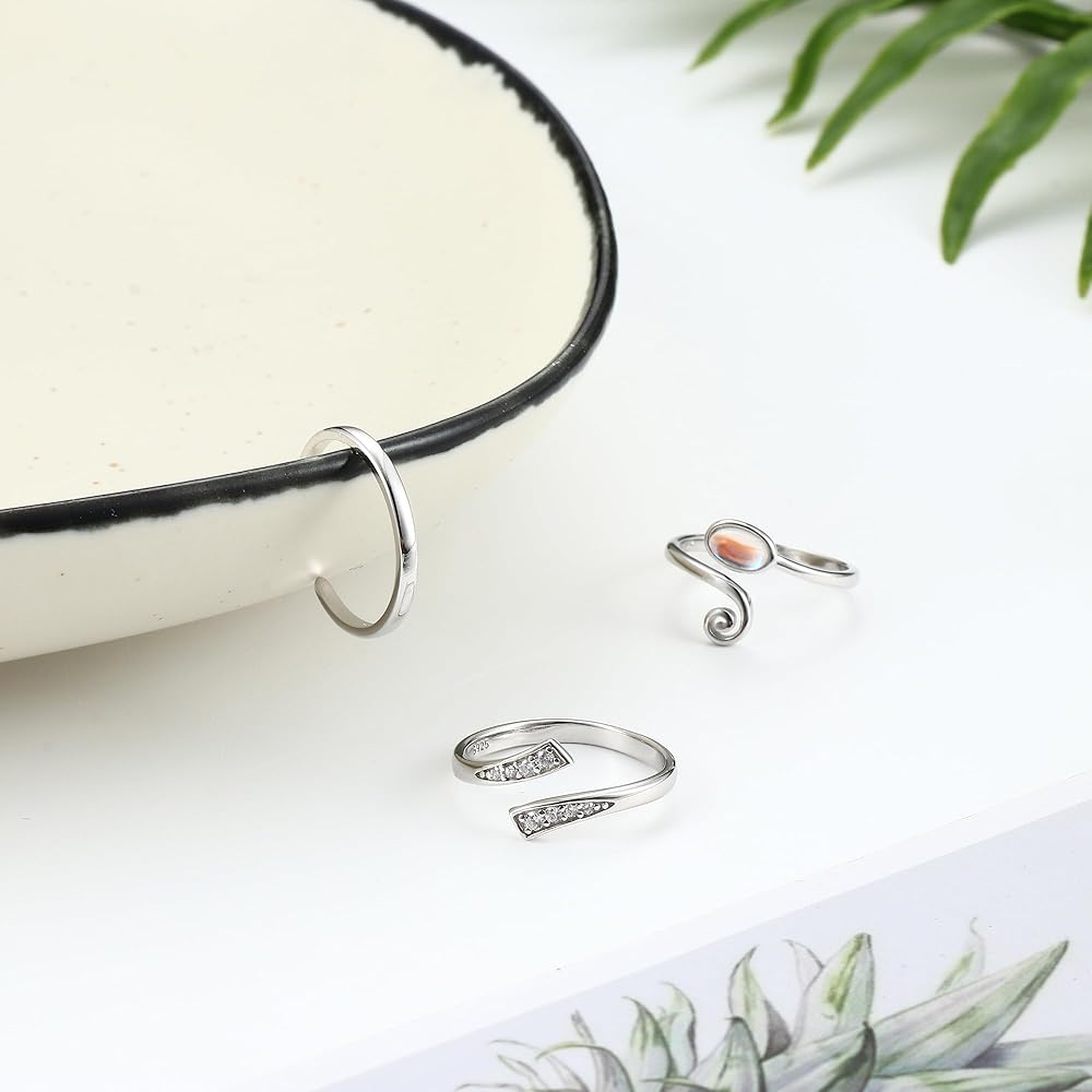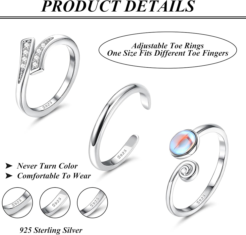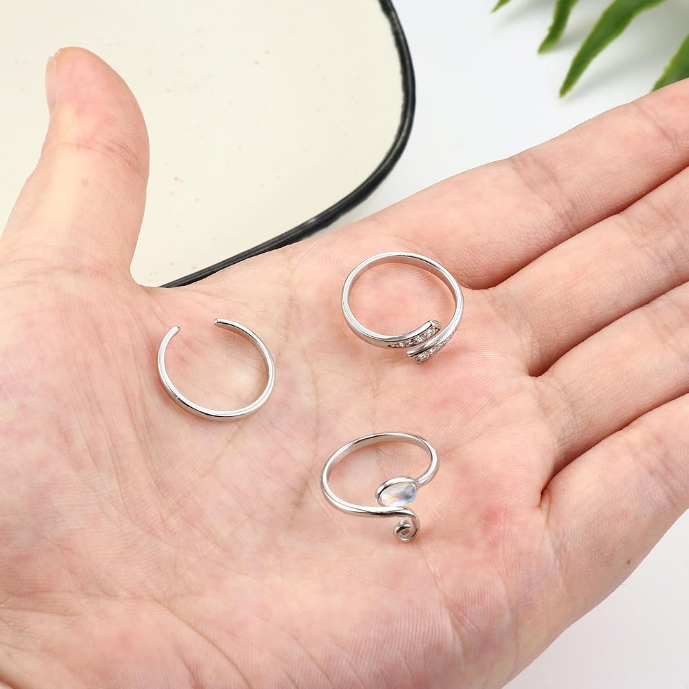 • تصميم حلقات أصابع القدم قابل للتعديل بمقاس قابل للتعديل، مادة فضية ناعمة عيار 925. من السهل تعديل المقاس ليتناسب بشكل جيد. مقاس الخاتم من 4 إلى 6. خفيفة الوزن، سطح مصقول للغاية ونهاية مستديرة، مريحة في الارتداء. نصائح: يرجى تعديل المقاس بلطف. أربع مجموعات لتختار من بينها، لتلبية جميع احتياجاتك