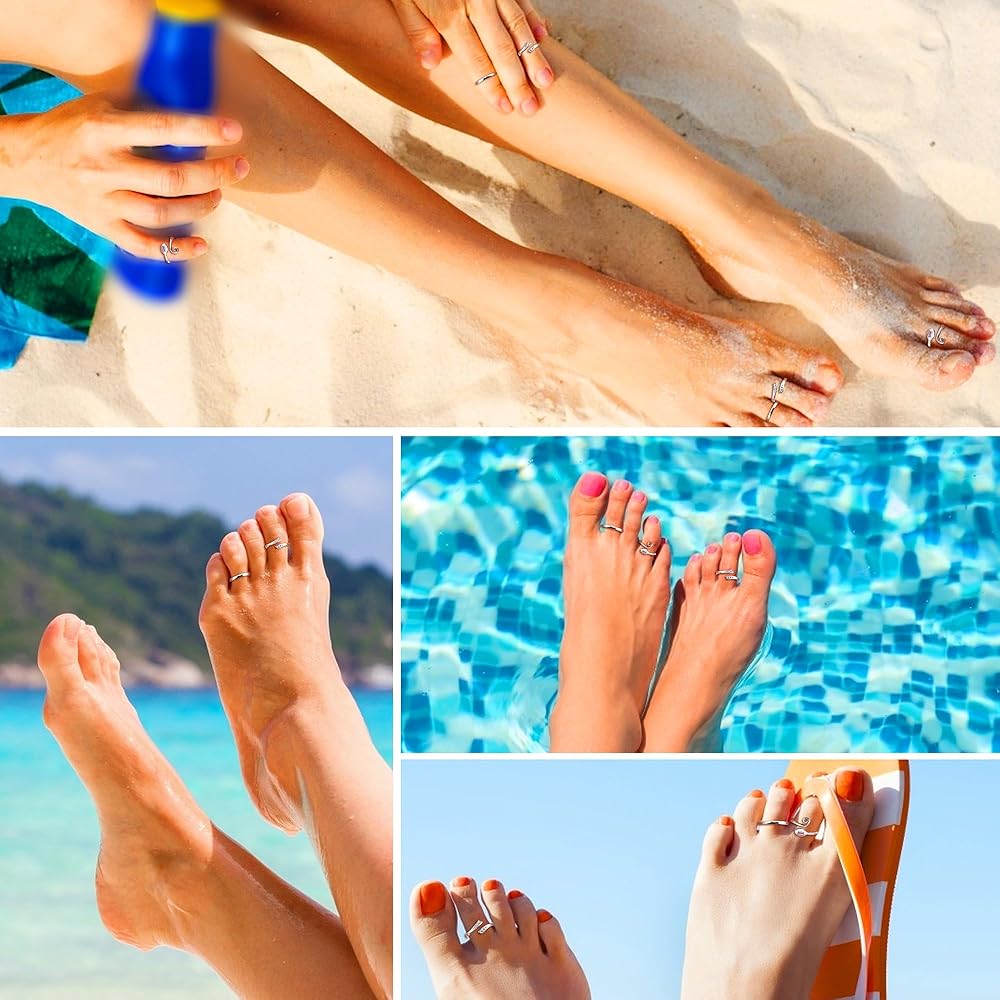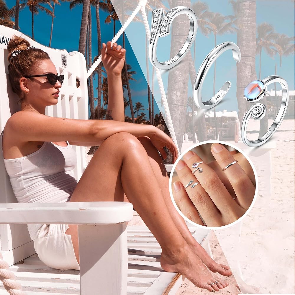 • مجموعة خواتم أصابع القدم البسيطة مصممة بسيطة، مجموعة خواتم مفتوحة عند الأصابع، تصميم بسيط وأنيق. قم بإثراء مجموعة مجوهرات الثقب الخاصة بك. مجوهرات هاواي فوت، تعزز مظهر أصابع القدم الأنيق، مناسبة للارتداء على الشاطئ والحفلات والارتداء كمجوهرات يومية.
