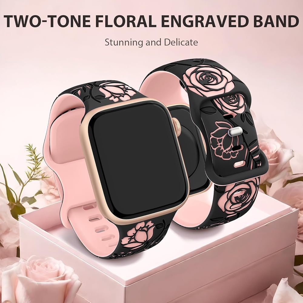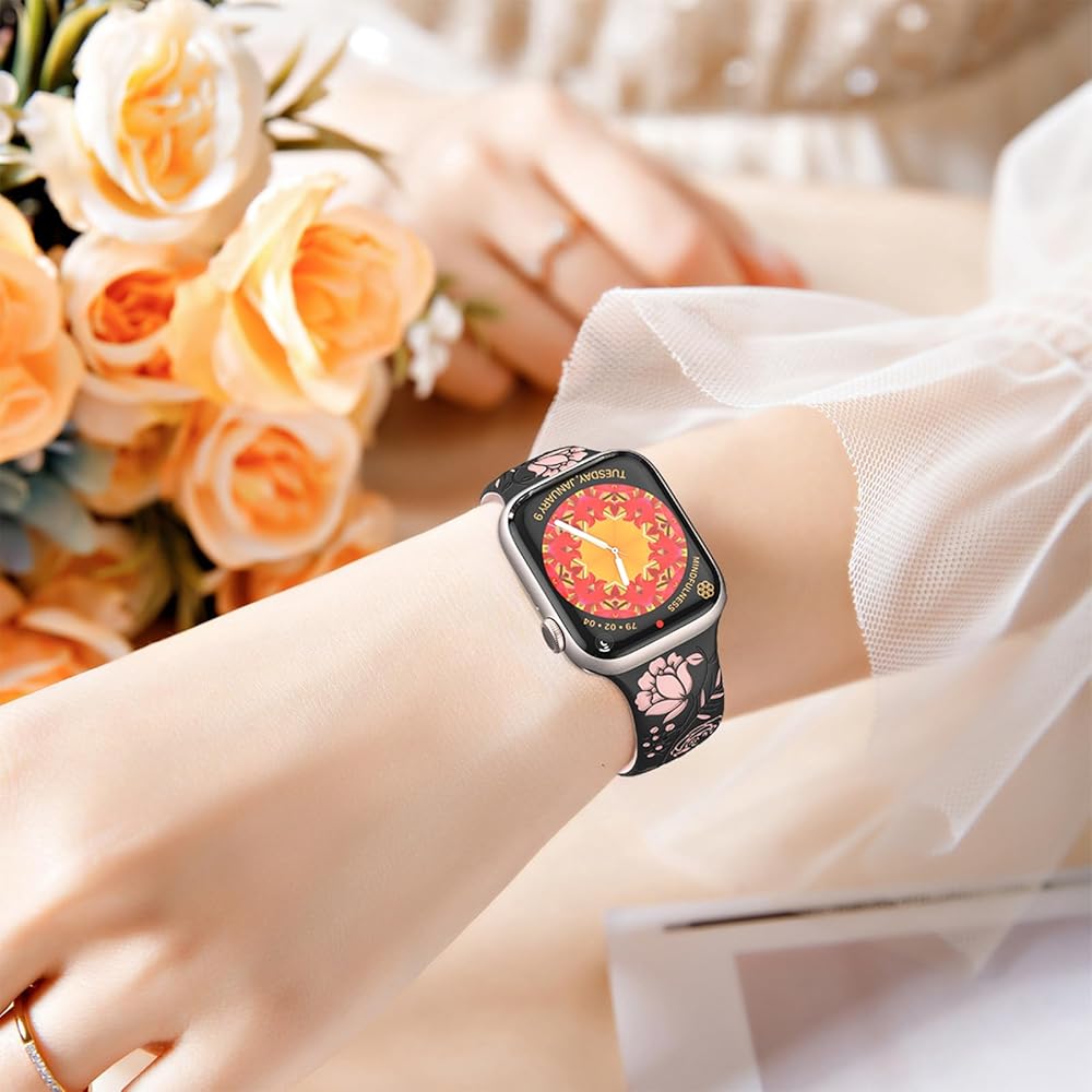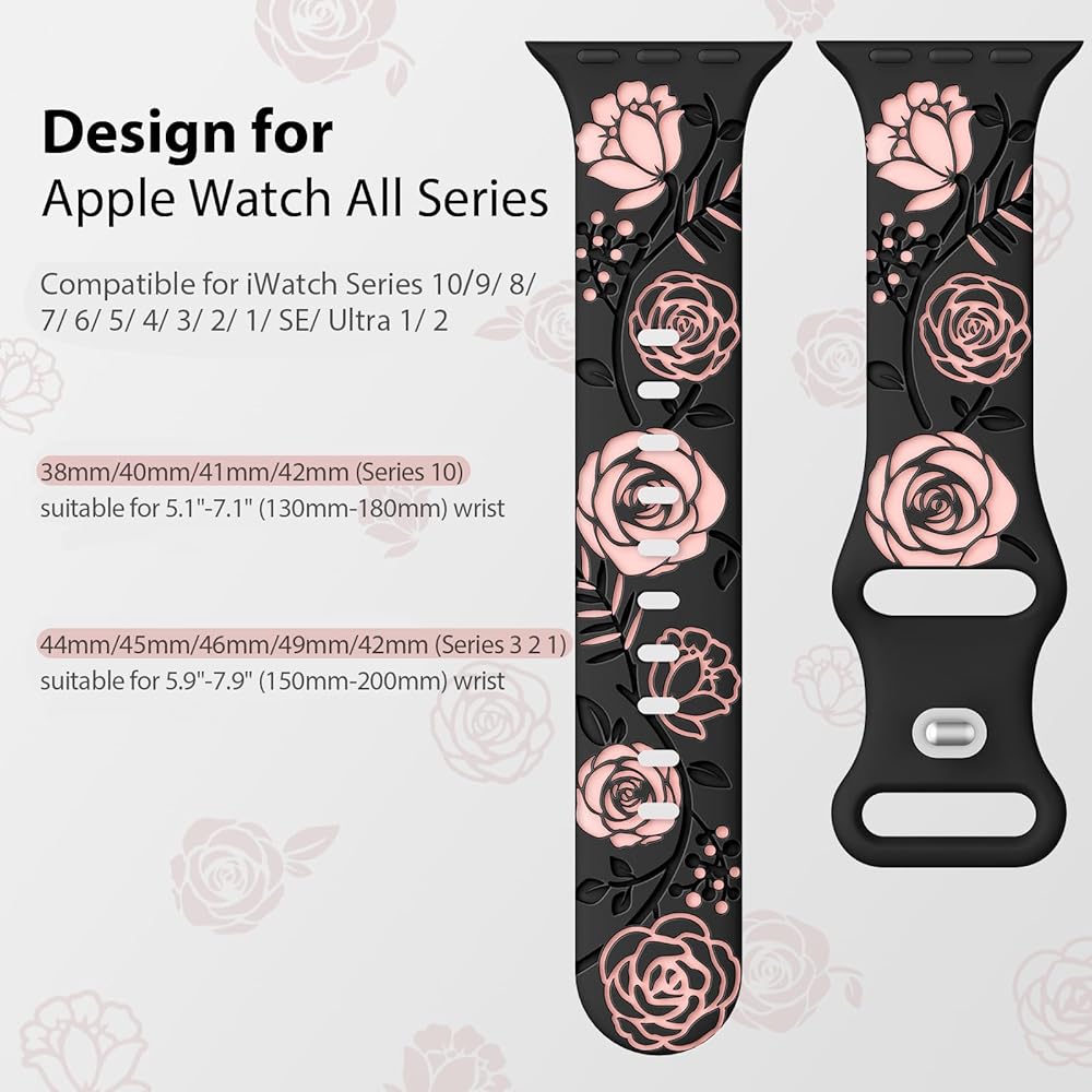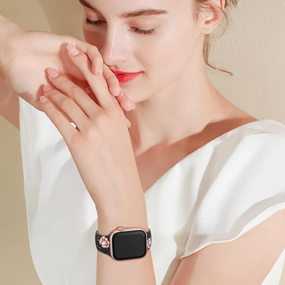 【متوافق مع جميع سلاسل ساعات Apple】سوار ساعة التفاح المنقوش عليه زهور HEARTBOOM متوافق مع Apple Watch Ultra 2، Apple Watch Ultra، Apple Watch SE، Apple Watch SE(الجيل الثاني) وApple Watch Series 9 Series 8 Series 7 Series 6 Series 5 4 سلسلة 3 سلسلة 2 سلسلة 1. متوفر بمقاسات 38 مم، 40 مم، 41 مم، 42 مم، 44 مم، 45 مم و49 مم.