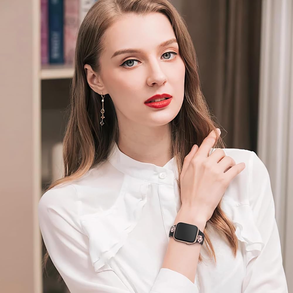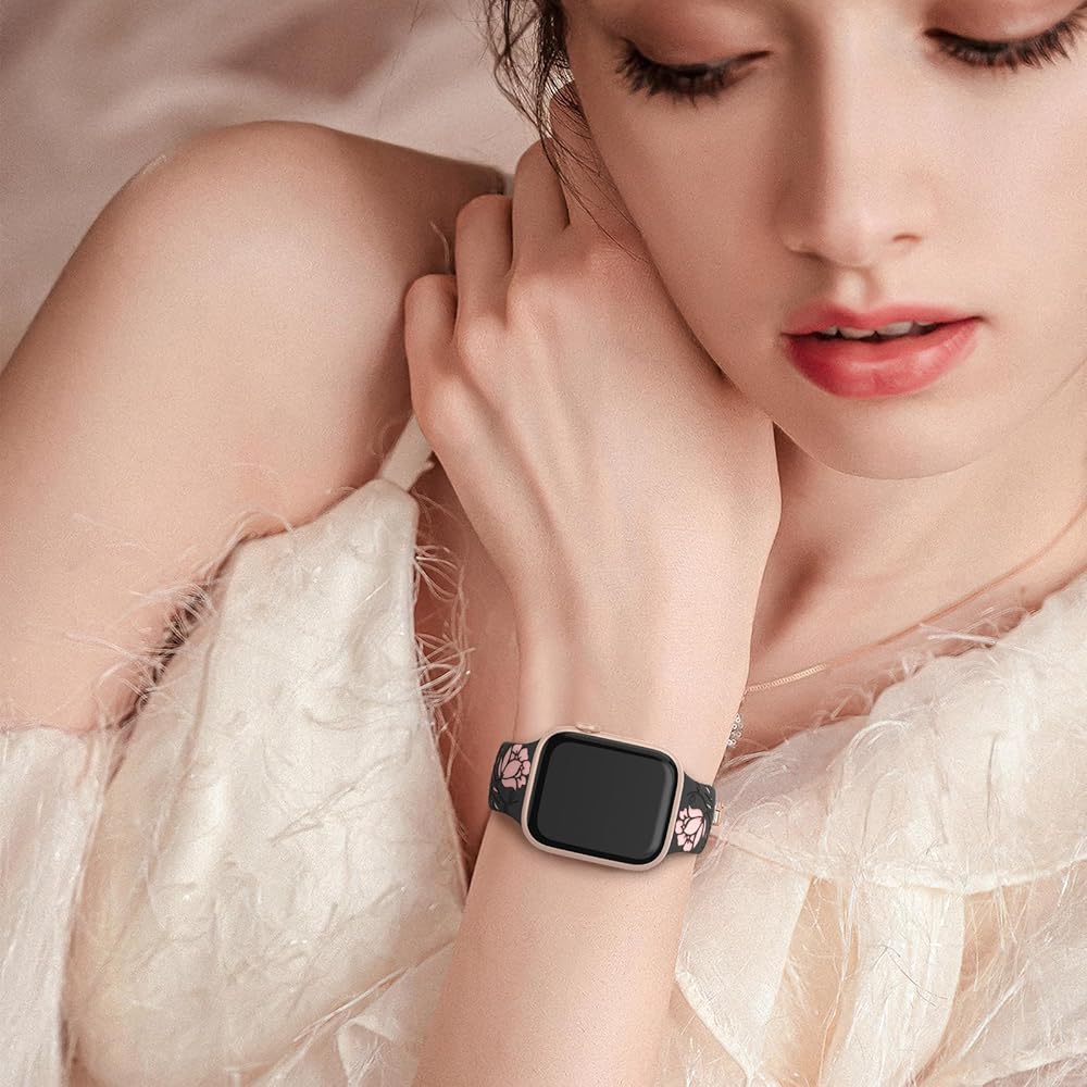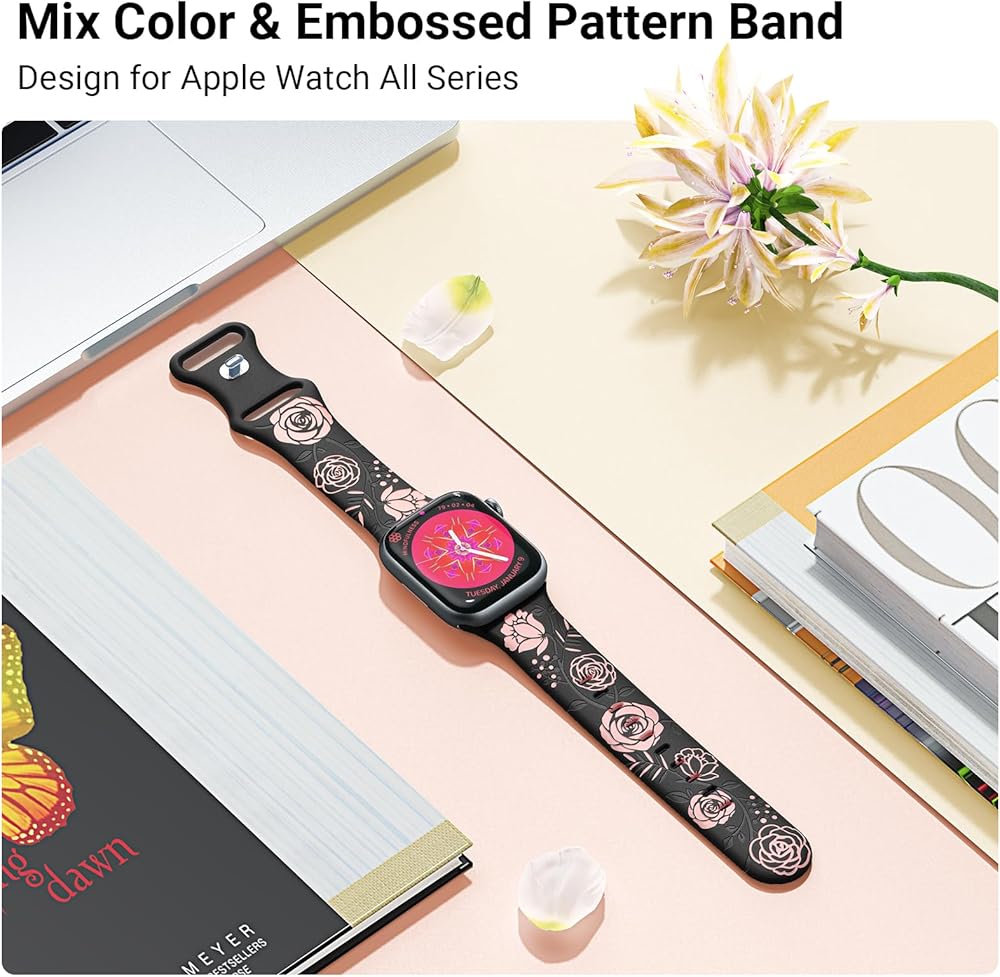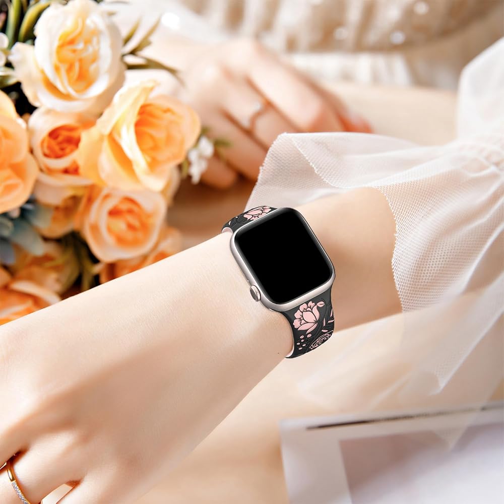 【متوافق مع جميع سلاسل ساعات Apple】سوار ساعة التفاح المنقوش عليه زهور HEARTBOOM متوافق مع Apple Watch Ultra 2، Apple Watch Ultra، Apple Watch SE، Apple Watch SE(الجيل الثاني) وApple Watch Series 9 Series 8 Series 7 Series 6 Series 5 4 سلسلة 3 سلسلة 2 سلسلة 1. متوفر بمقاسات 38 مم، 40 مم، 41 مم، 42 مم، 44 مم، 45 مم و49 مم.