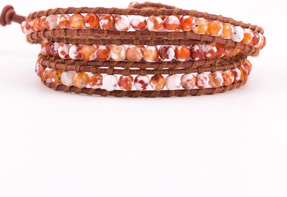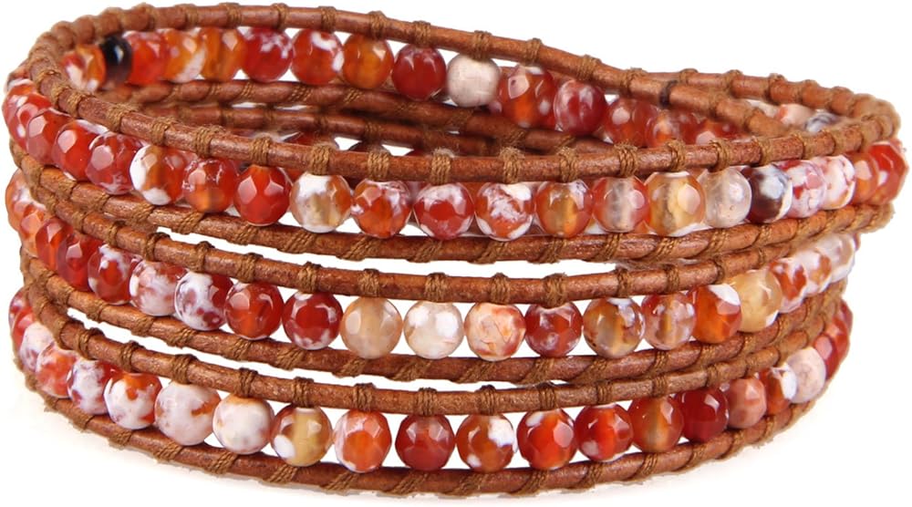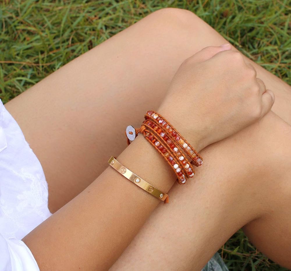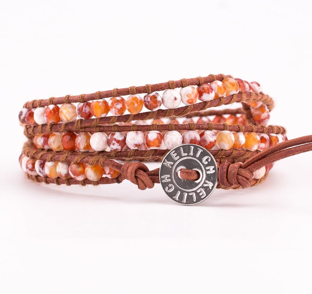 ابتكرت KELITCH خرز العقيق الناري على الجلد الطبيعي 3 سوار ملفوف مصنوع يدويًا مجوهرات صيفية ساحرة جديدة