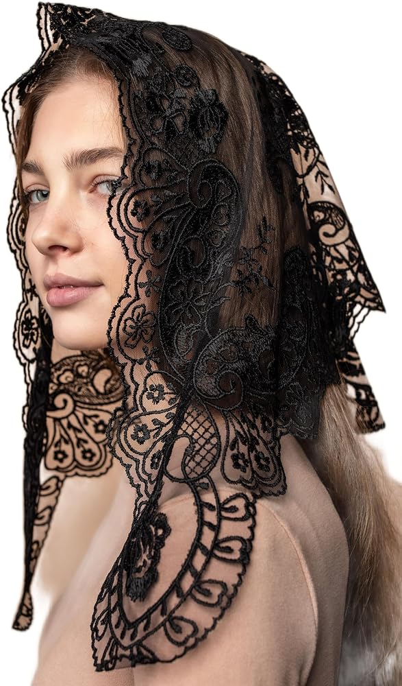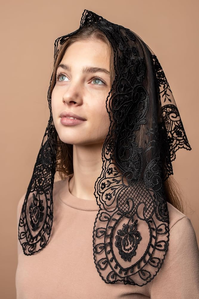 • HANDCRAFT LACE VEIL - Our Maria Veils Catholic Mantillas features exquisite handcrafted craftsmanship and intricate embroidery. These lace veils are perfect for visiting church and reviving the tradition of veiling.