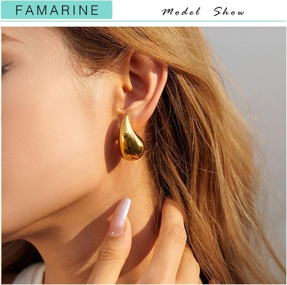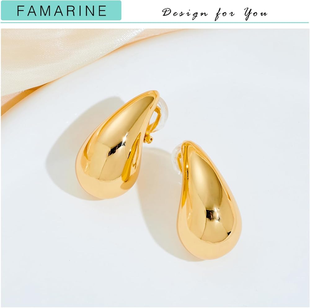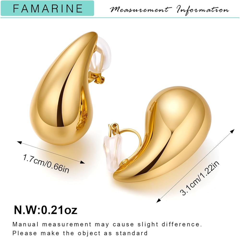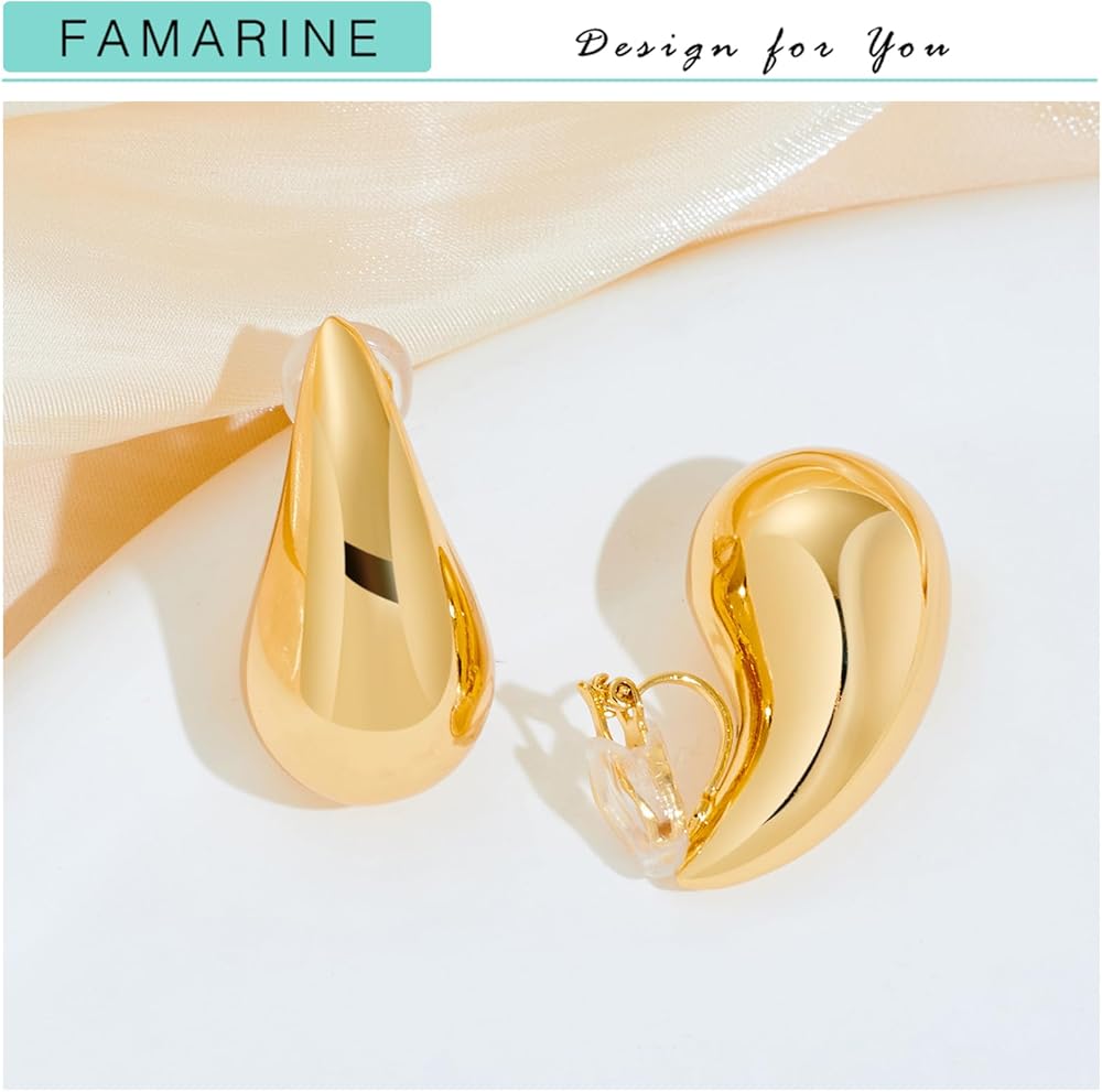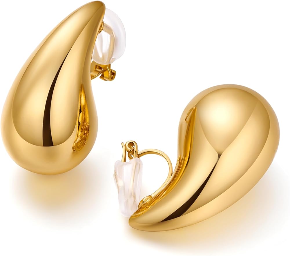 أقراط ذهبية بمشبك للنساء، أقراط بمشبك مكتنزة، أقراط كبيرة على شكل قطرة ماء ذهبية غير مثقوبة، مجوهرات عصرية هدية
