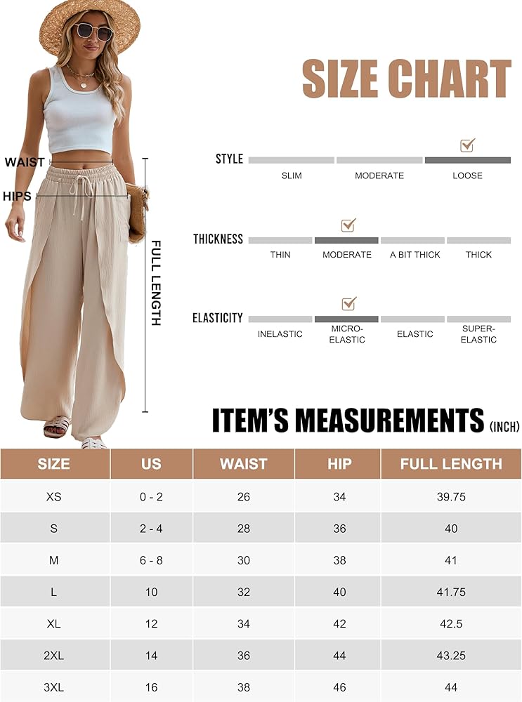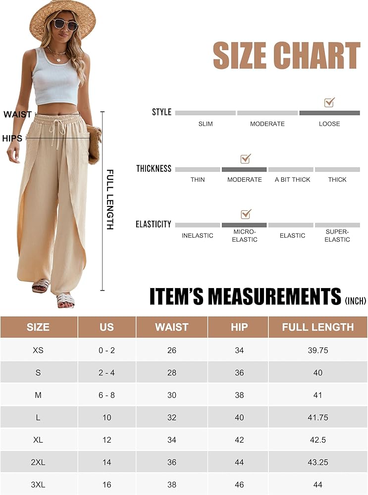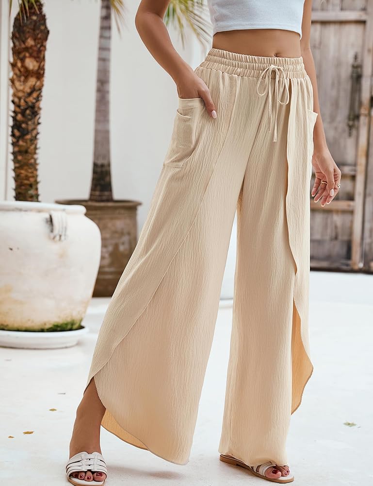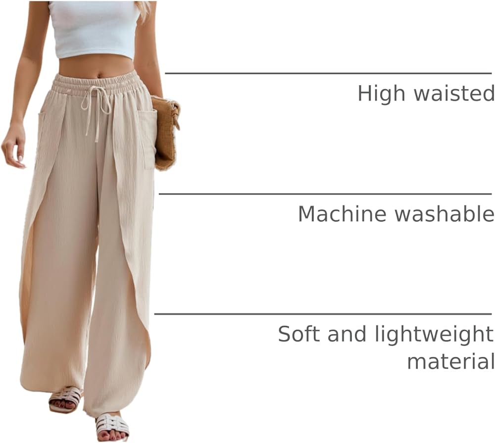【مقاس فضفاض】ابق مرتاحًا وأنيقًا طوال الصيف مع بنطال الشاطئ هذا الذي يتميز بخصر عالٍ وساق واسعة وحاشية غير متماثلة.