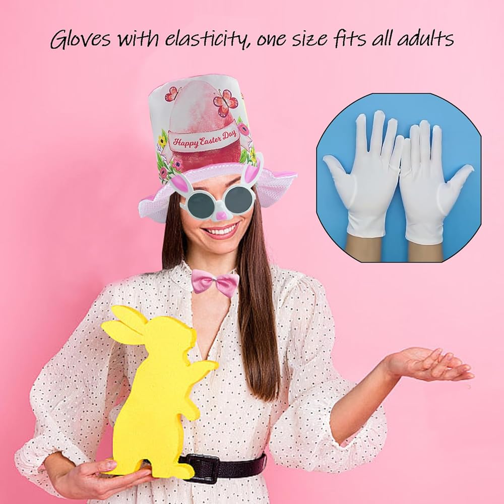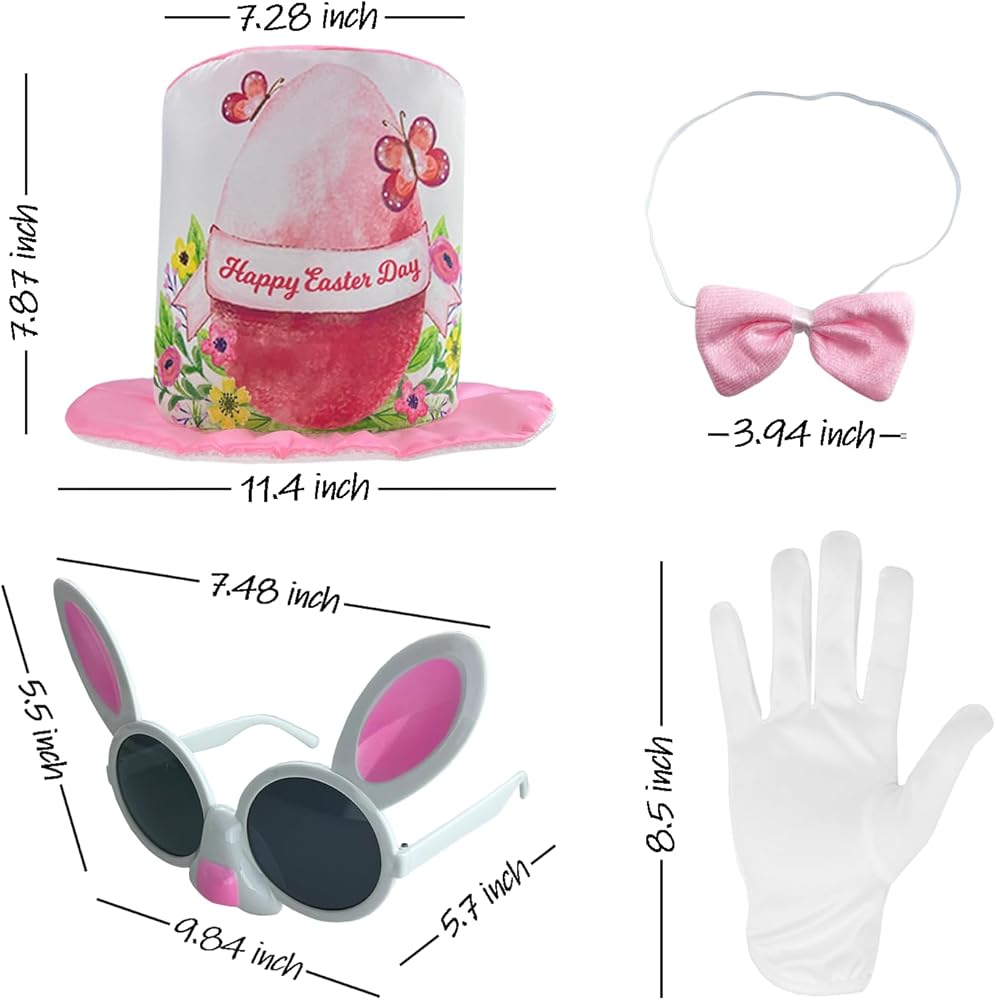 High Quality Materials: The Easter hat is made of elastic polyester fiber, providing excellent comfort and strong support. Bunny glasses are made of durable plastic. The gloves are made of ultra-fine fibers, which are elastic and soft.