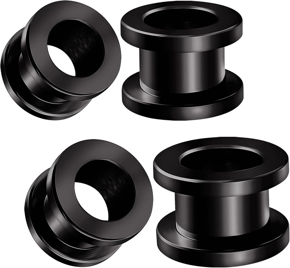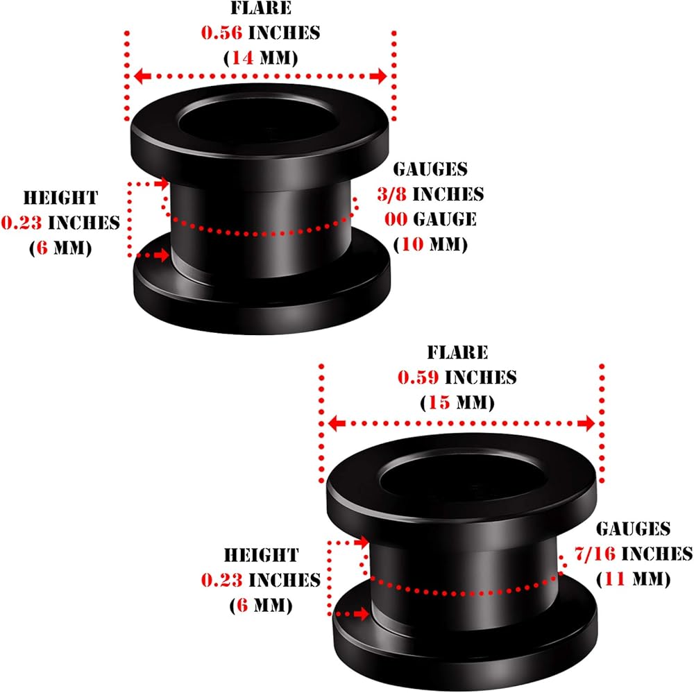 ستتلقى زوجًا من مقاييس الأذن والأنفاق من الأكريليك الأسود مقاس 00 جرام 3/8 بوصة 10 مم (لحم مناسب للبرغي). زوج من أقراط قياس 7/16 بوصة مقاس 11 مم من الأكريليك الأسود (لحم ملائم للبراغي).