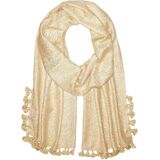 Luminous metallic threads are woven throughout the acrylic-blend scarf.
