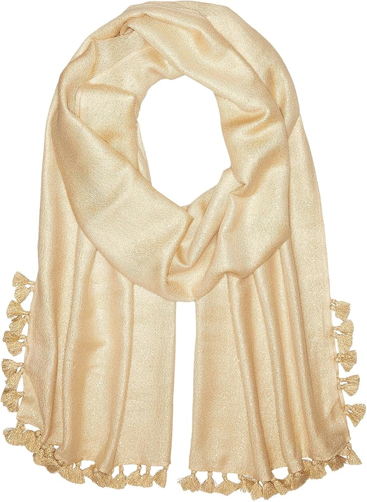 As a scarf or shawl, the Lilly Pulitzer Lana Scarf delivers stylish glamour and is a fine accompaniment to printed clothing. Luminous metallic threads are woven throughout the acrylic-blend scarf. Mini tassel ends. 50% acrylic, 44% viscose, 6% metallic. Dry clean.