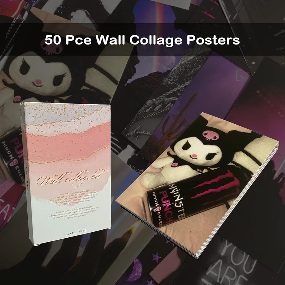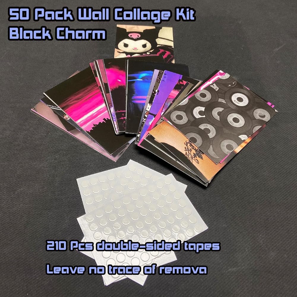 مجموعة مكونة من 50 مجموعة من مجموعات ملصقات الحائط، مجموعات صور جمالية ملونة، مجموعات بطاقات بريدية مقاس 4 × 6 بوصة، مجموعة صور مجمعة على الحائط (سحر أسود)