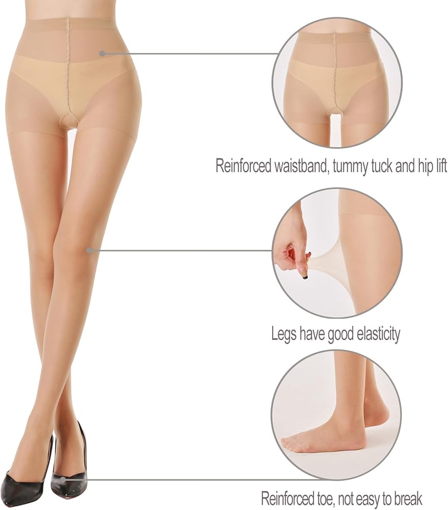 • 【مقاوم للجري وداعم】 نايلون مع جزء علوي للتحكم وأفخاذ عالية التمدد تناسب الجسم بشكل أفضل وتوفر راحة إضافية. نسيج عالي الكثافة من الألياف الدقيقة الناعمة يجعل هذه الجوارب الشفافة صعبة التمزق بالأظافر وتحمي الساقين من الشمس.