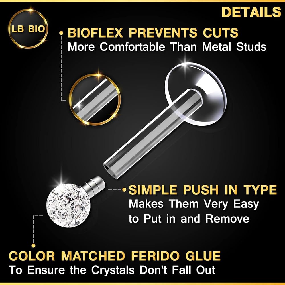 يمنع بيوفليكس الجروح وهو أكثر راحة من الأزرار المعدنية، مما يجعله المادة المثالية لقضيب حلقات الشفاه.
