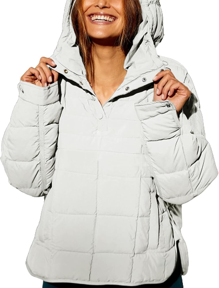ييدارير سترة نسائية كبيرة الحجم منتفخة باكمام طويلة وغطاء للراس خفيفة الوزن دافئة مبطنة