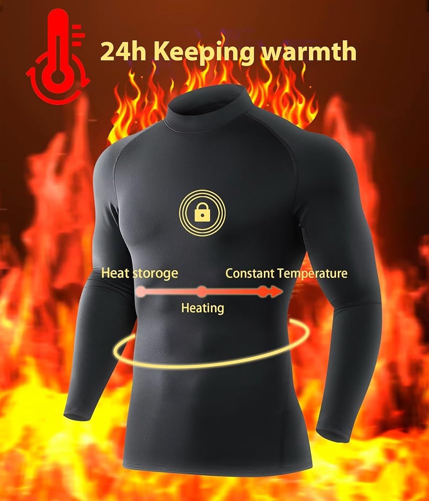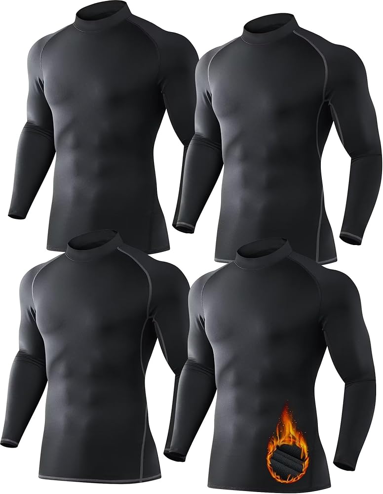 مجموعة من 5 أو 4 قمصان رجالية ذات رقبة سلحفاة حرارية وقمصان مضغوطة وأكمام طويلة