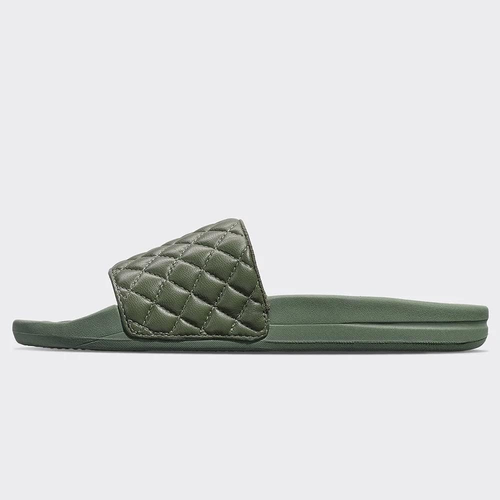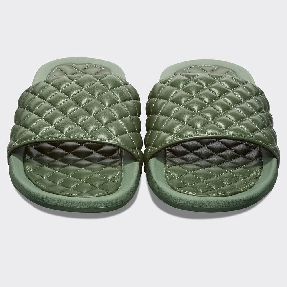 Diamond-quilted nappa leather pairs with Propelium cushioning to elevate a pair of sliders from laid-back to luxe with the added comfort of 3D-molded footbeds.
