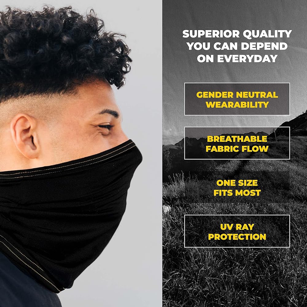 ملابس متعددة الاستخدامات: إلى جانب كونه قناع الوجه الضاغط المثالي، يمكن أيضًا استخدام حزام الرقبة الخاص بنا لمجموعة متنوعة من الاستخدامات الأخرى مثل واقي الشمس للرقبة، وعصابة الرأس، ودرع الغبار، والمزيد!