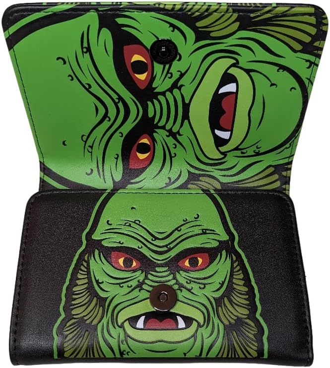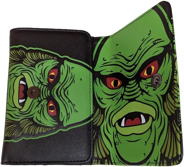 This Haunting Tri-Fold Wallet Opens to Reveal the Creature from the Black Lagoon! Graphic Printed and Embossed on Vegan Leather. Makes a Monster Gift for any Fan of the Classic 1954 Horror Film.